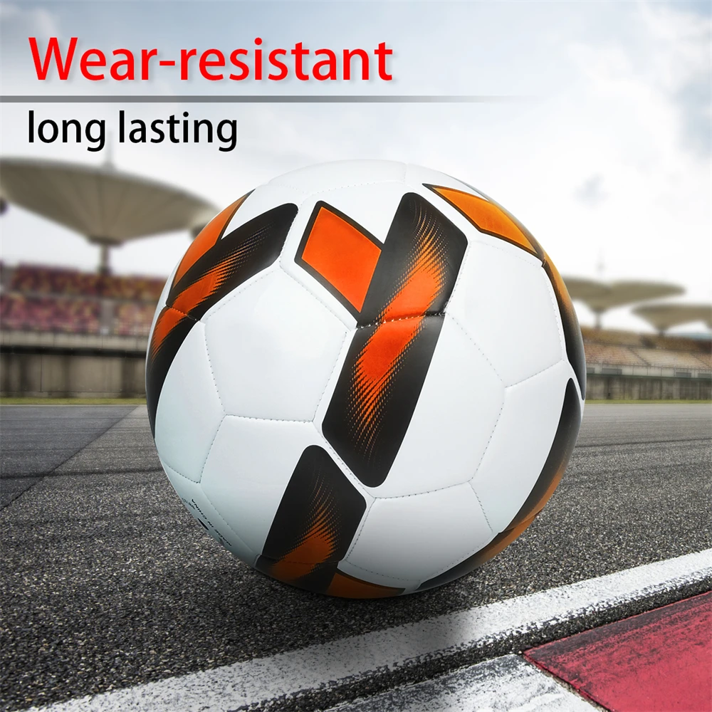 Мы нанимали команду, чтобы создать футбол, чтобы сделать его визуально освежающим. Кожа футбола изготовлена из высококачественного ТПУ материала, двухслойная внутренняя подкладка повышает износостойкость футбола, И резиновая внутренняя подкладка может лучше поддерживать форму футбола. Удобные ноги, износостойкие и прочные, дарят вам удовольствие от занятий спортом на лужайке.