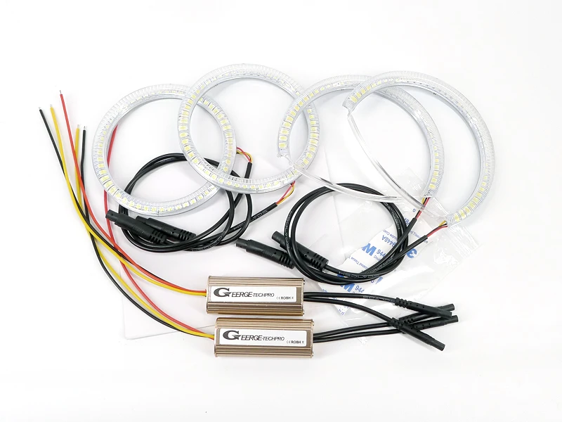 Специальный IC встроенным за задержку AO (янтарно-ВЫКЛ) функцияСодержимое упаковки:4 шт. светодиодный светильник в виде ангельских глаз кольца2 x контроллерДвухсторонняя наклейкаЦветная коробка-1 шт.