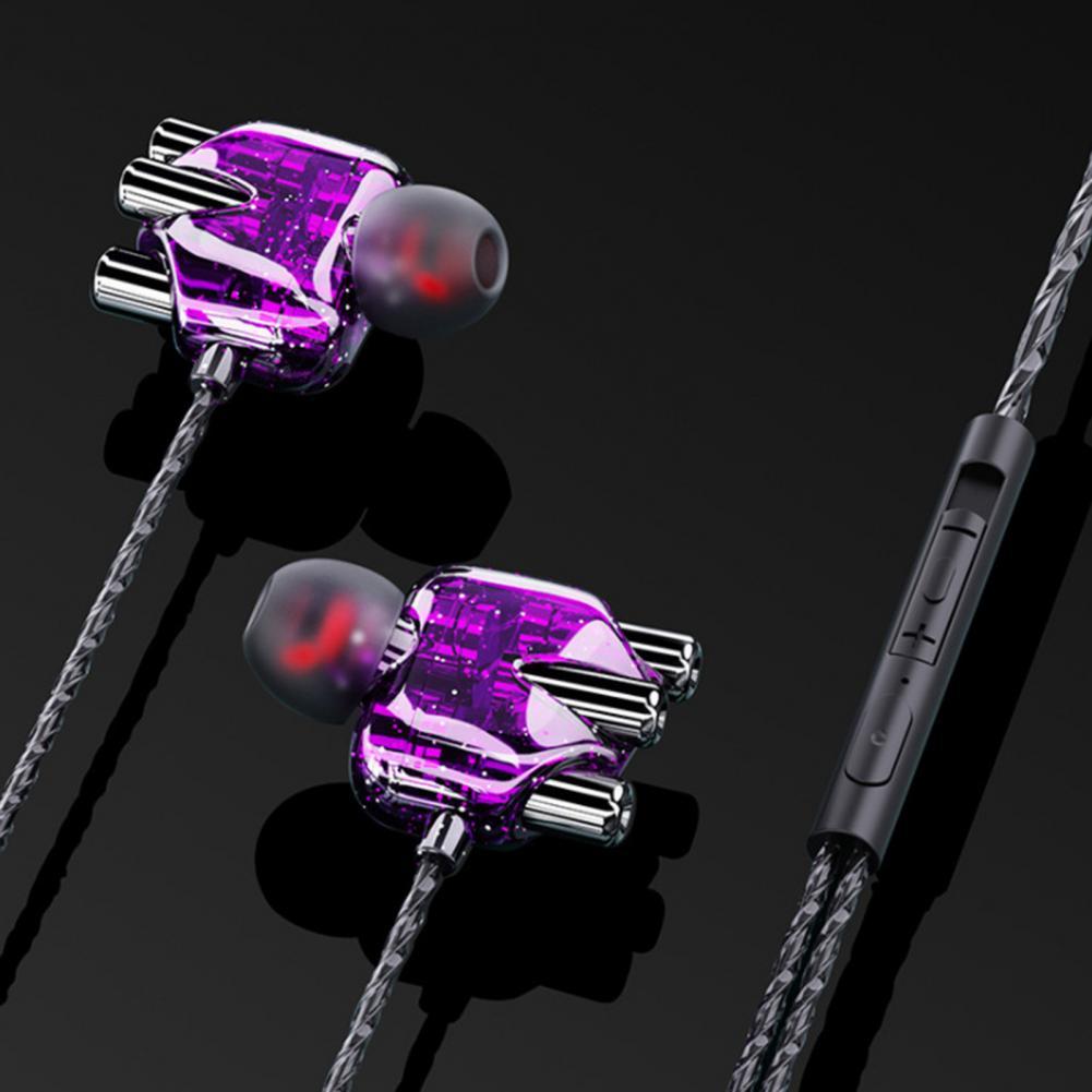 Проводные наушники с защитой от обмотки, многожильные проводные наушники, подвижная катушка ABS, 4 динамика, чувствительные Проводные HiFi наушники для музыки