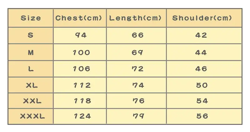 Таблица размеров
