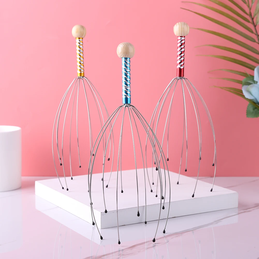 Ручной массажер для головы в форме осьминога от стресса спа-массажер для шеи расслабляющий массажер для кожи головы со стальным шариком