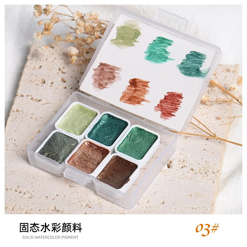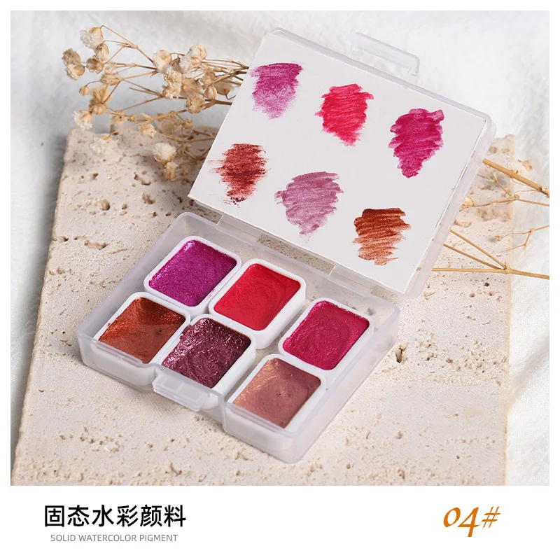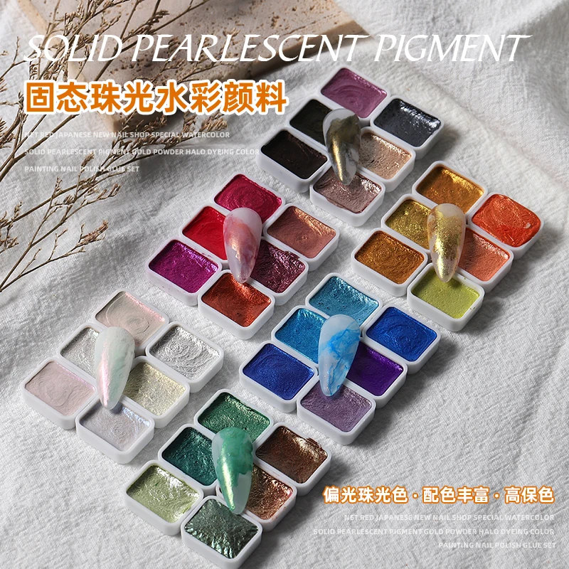 6 Цвета/Набор чехол с блестящей жемчужной Твердые акварельные Краски синий металлик фиолетовая для украшения ногтей хром пигмент Aquarela декоративный для маникюра DIY