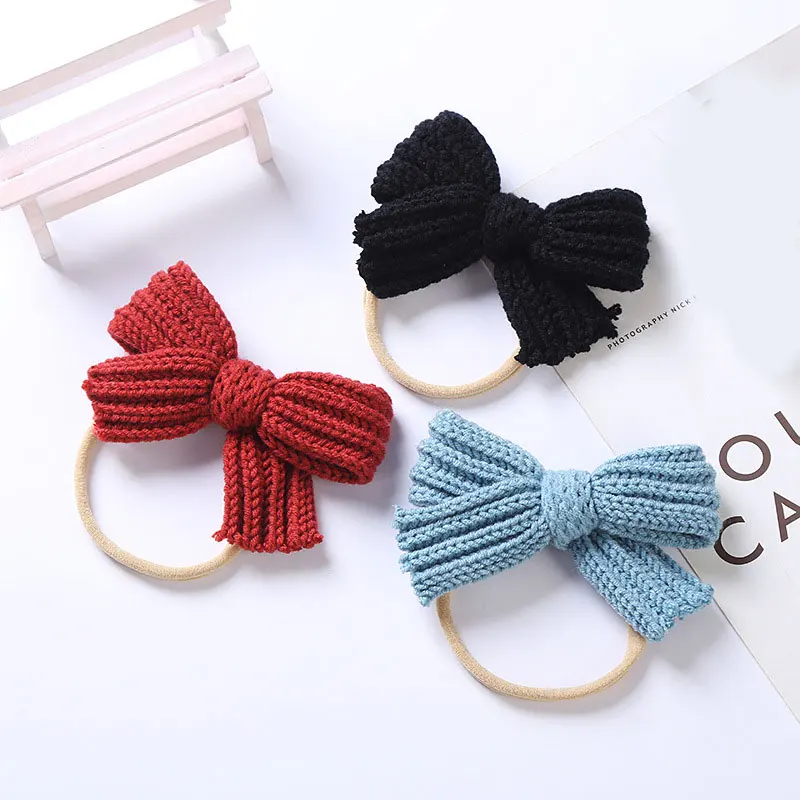 Детский нейлоновый ободок для волос с шерстяным бантом, мягкий и удобный материал, приятный для кожи и нежный, не вредит коже.