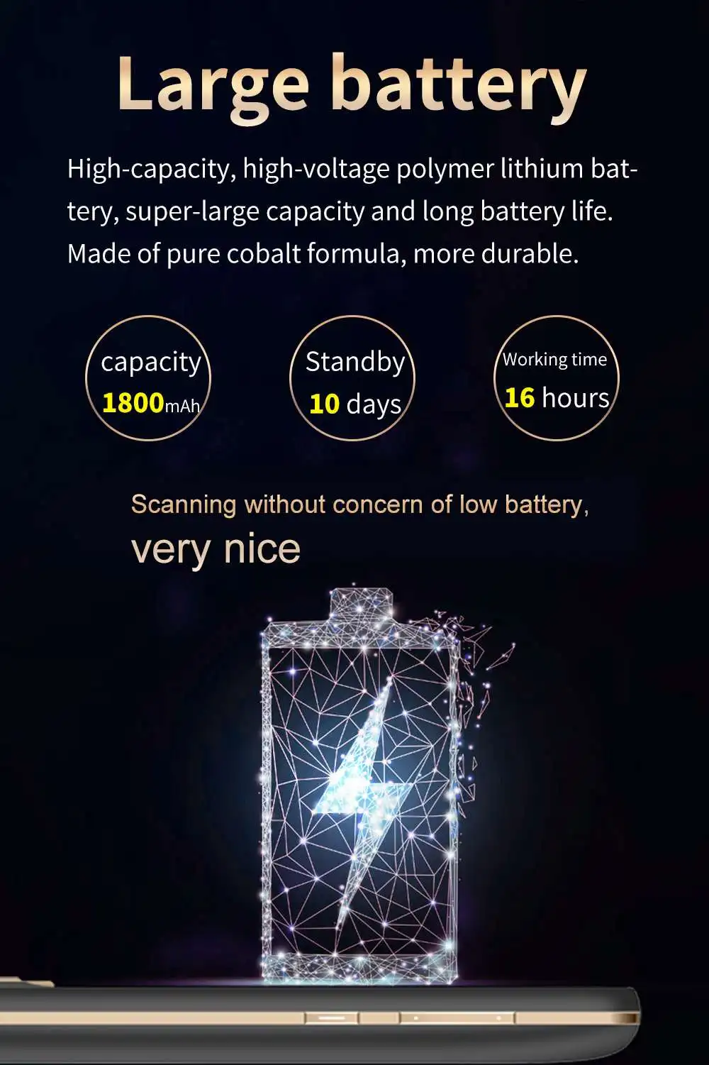 ★ Large battery: high-capacity high-voltage polymer lithium battery, large capacity, long battery life. Made of pure cobalt formula, more durable.