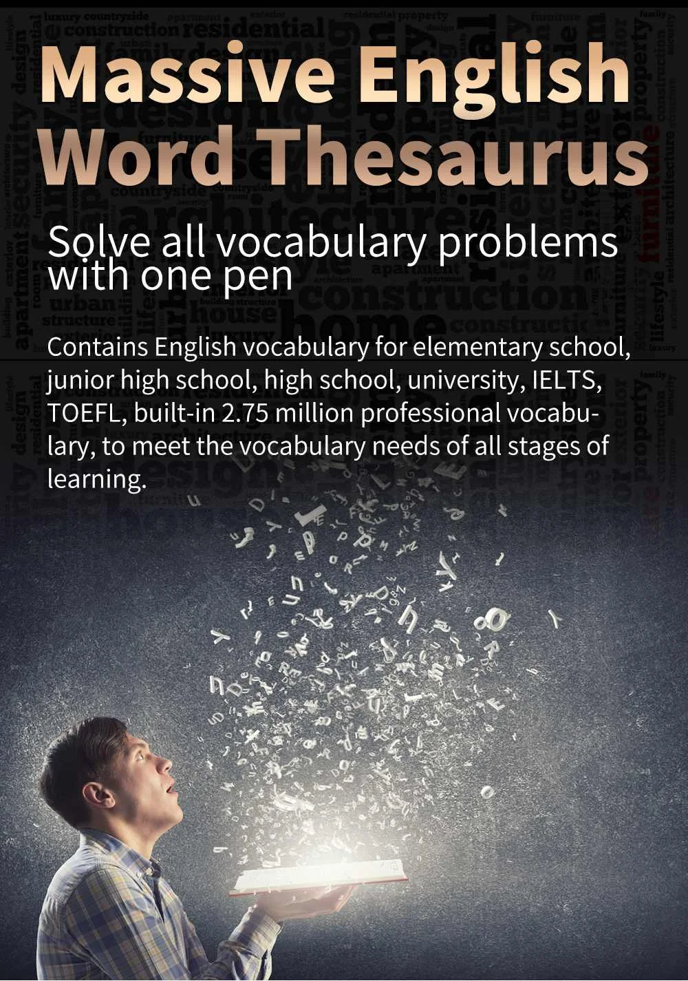 ★ Massive vocabulary: Professional Chinese-English dictionary, built-in 2.75 million professional vocabulary, to meet the needs of vocabulary learning at all stages;