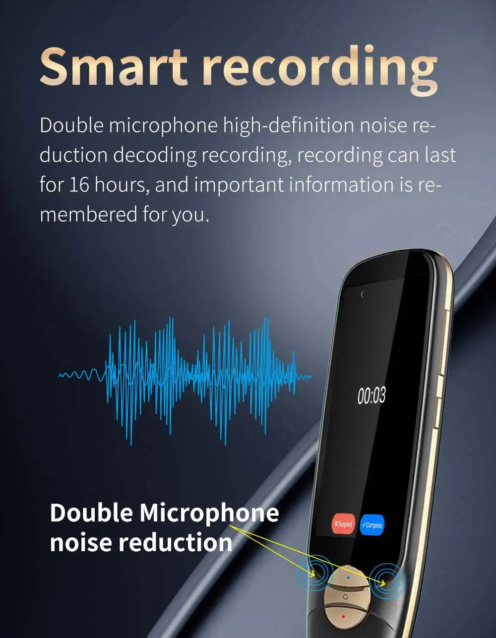 ★ Dual-mic design: High-sensitivity dual-microphone array design, plus noise reduction algorithm, to ensure that voice input and recognition do not make mistakes;