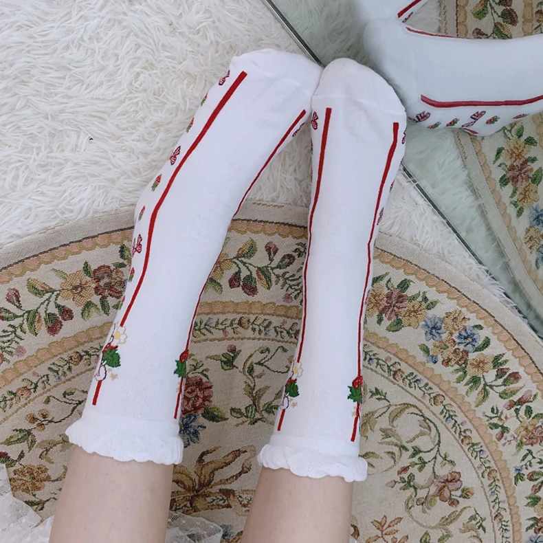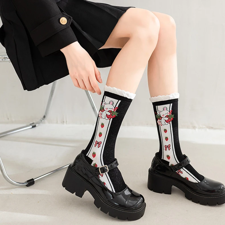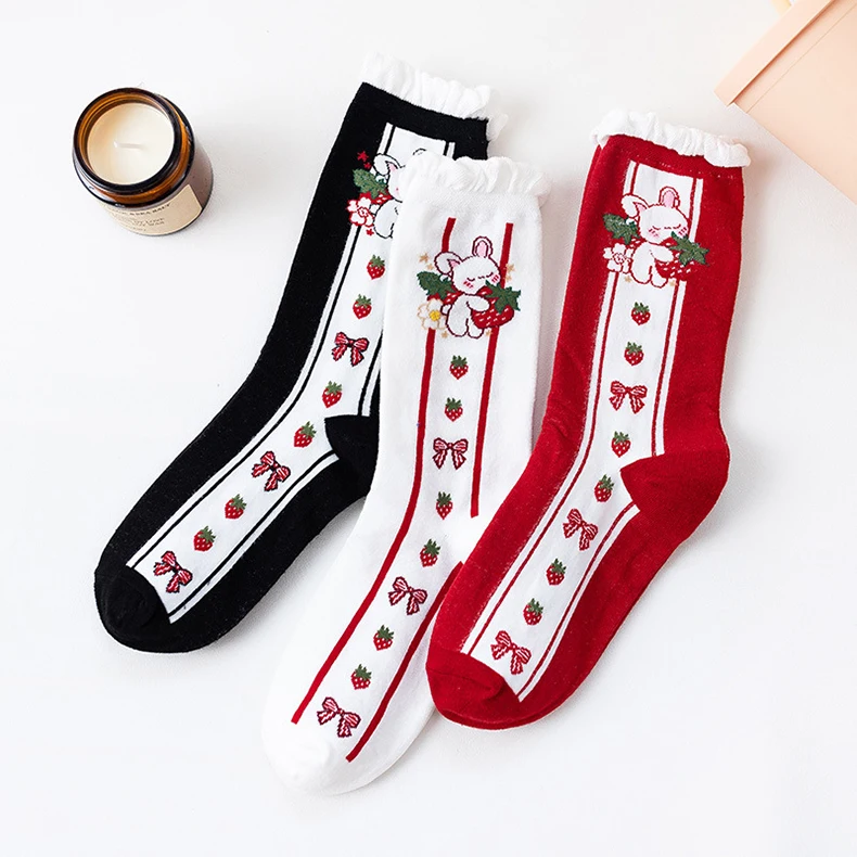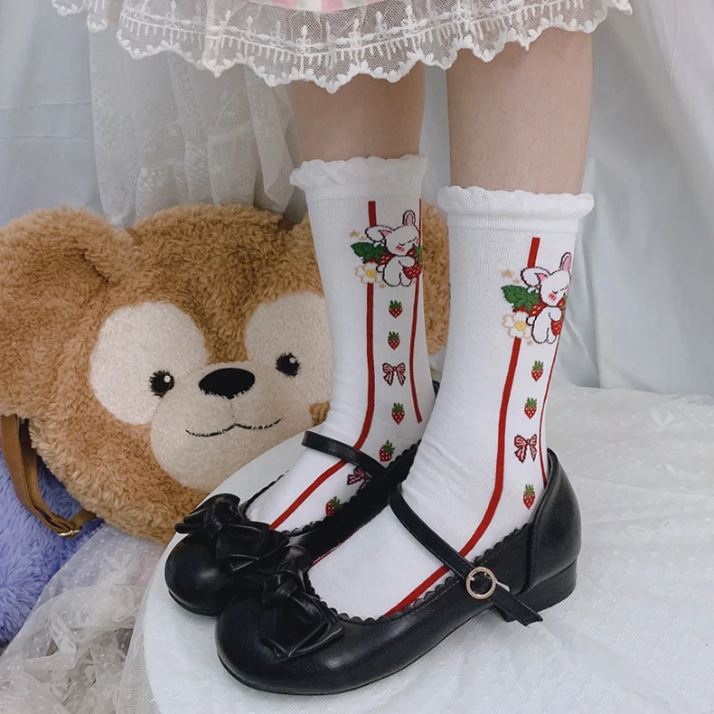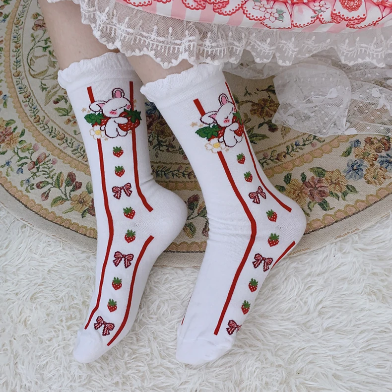Осенние Kawaii Лолита носки кролик клубника Печать колледж JK Униформа лоли чулки хлопок Спорт Косплей Аксессуары для девочек
