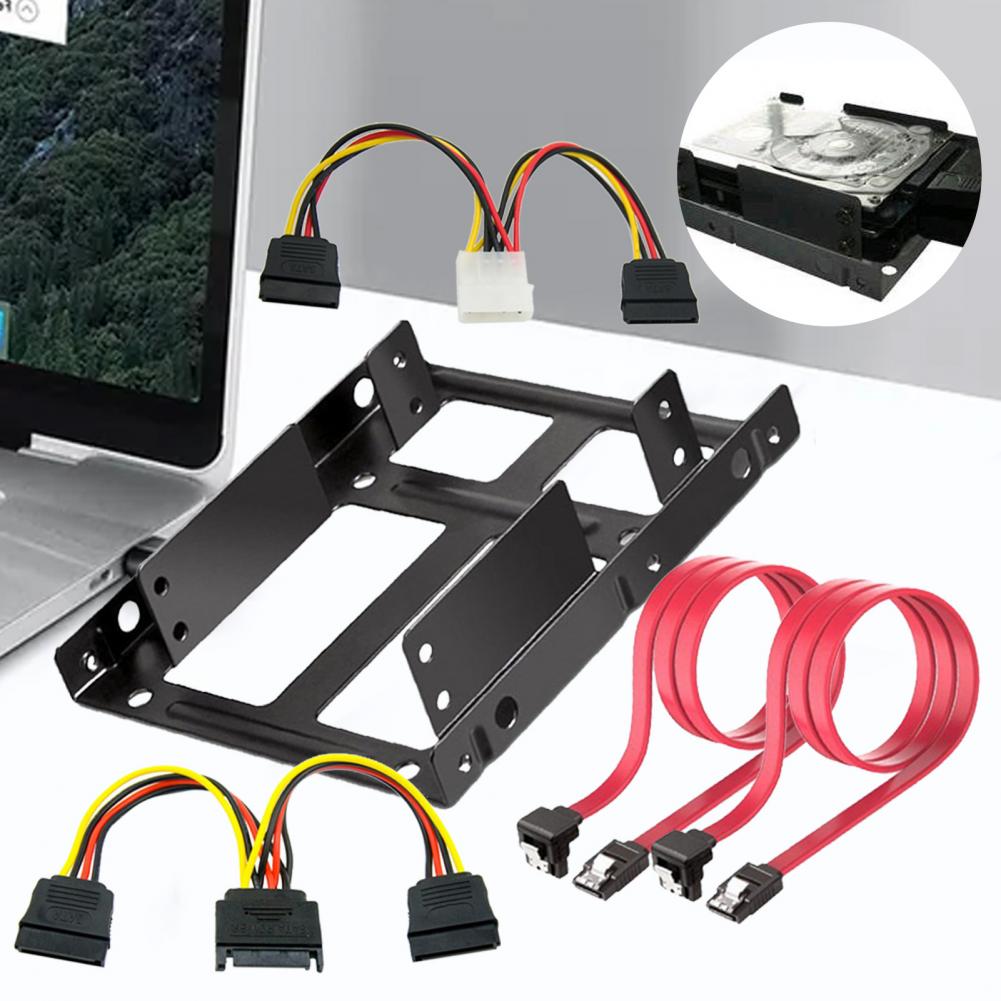 1 комплект жесткий диск держатель совместим с разнообразными устройствами с легкой Установка металлический 2,5 дюймов до 3,5 дюймов HDD кронштейн SSD устанавливайте с жесткими дисками SATA кабель для передачи данных для ПК