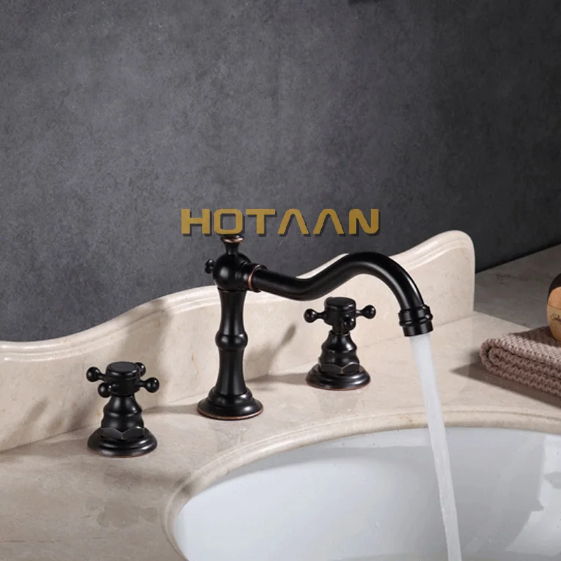 Твердый латунный Смеситель для ванной комнаты, кран для раковины, бронзовый кран для кухни с двумя ручками, 3 отверстия, 3 шт., кран для раковины на бортике