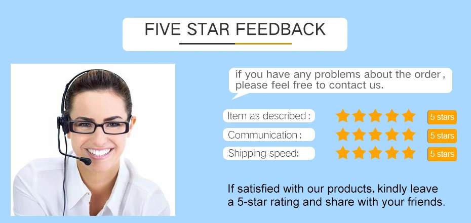Your ваше подтверждение будет высоко оценено после получения товаров. Как только вы получили товар, надеемся, что вы оставите нам положительный отзывы (4 или 5 звезд). -Прежде чем оставлять негативные отзывы. Сначала свяжитесь с нами, и мы поможем вам решить проблему.