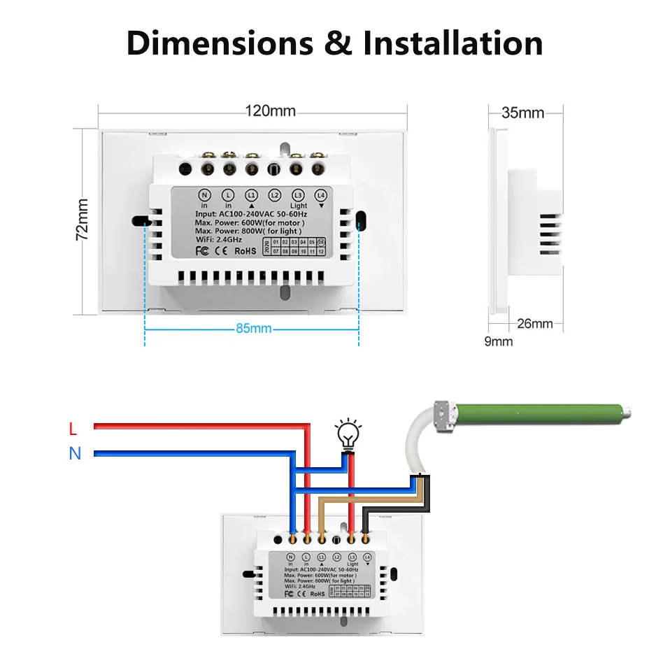 -Пожалуйста, обратите внимание, что наш умный переключатель затвора может работать с 4 проводами классических двигателей переменного тока. Пожалуйста, проверьте его перед покупкой.