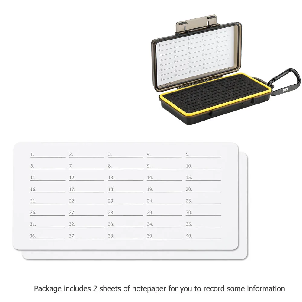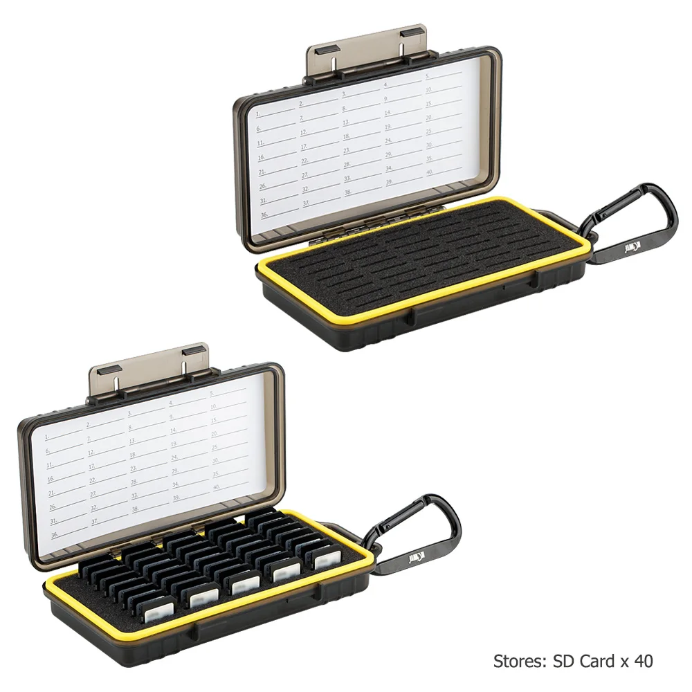 Чехол для карт памяти KIWIFOTOS KCB-SD40 может хранить 40 карт SD / NS / PSV / CFexpress Type A. Изготовленный из высококачественного и экологически чистого материала, этот чехол для карт памяти эффективно защищает ваши карты памяти от пыли, ударов, грязи и брызг воды. Высокопрочный корпус из поликарбоната прочный и долговечный. Внутренняя часть формованной губки под заказ имеет характеристики амортизации, что может значительно уменьшить удары и воздействие, чтобы лучше защитить ваши карты памяти. С силиконовым уплотнительным кольцом чехол эффективно удерживает пыль и воду. Кроме того, эргономичная система блокировки позволяет легко открывать и закрывать. В комплекте с формованной ушко, чехол может быть брать с собой удобно. Посылка включает в себя блокнот и наклейки с цифрами для лучшей организации карт. При необходимости, вы можете использовать прилагаемый крюк и петельку, чтобы зафиксировать блокнот в чехол для карты памяти. Этот чехол для карты памяти станет хорошим партнером для хранения карт памяти.
