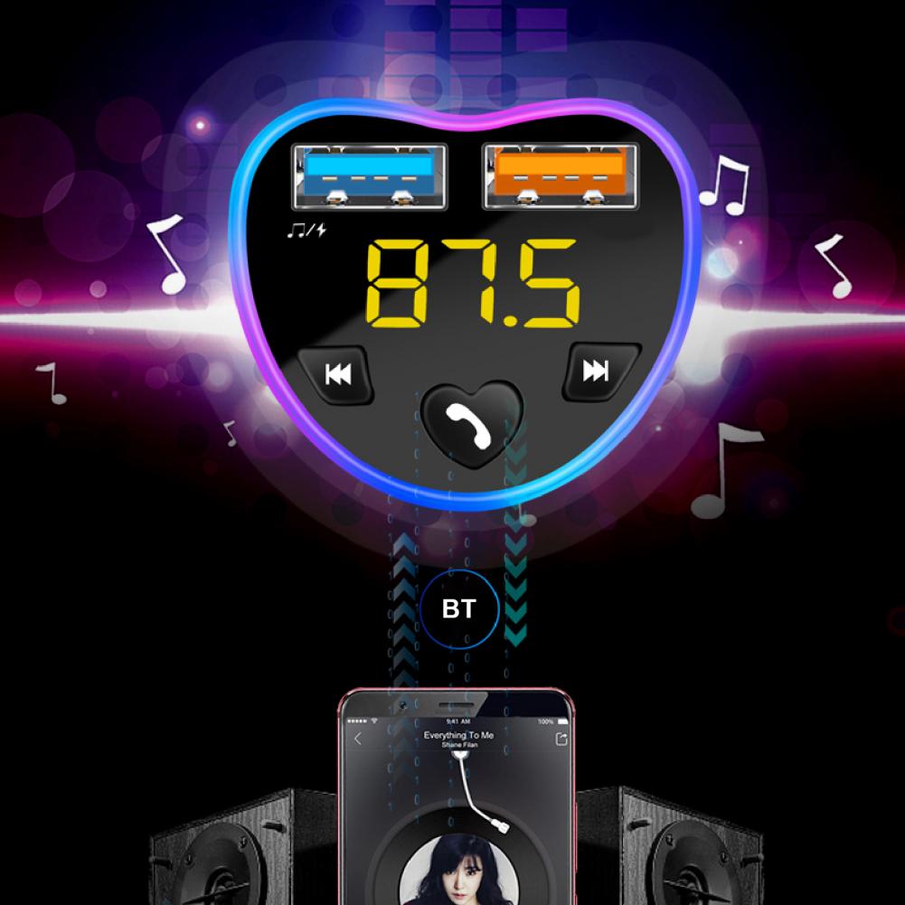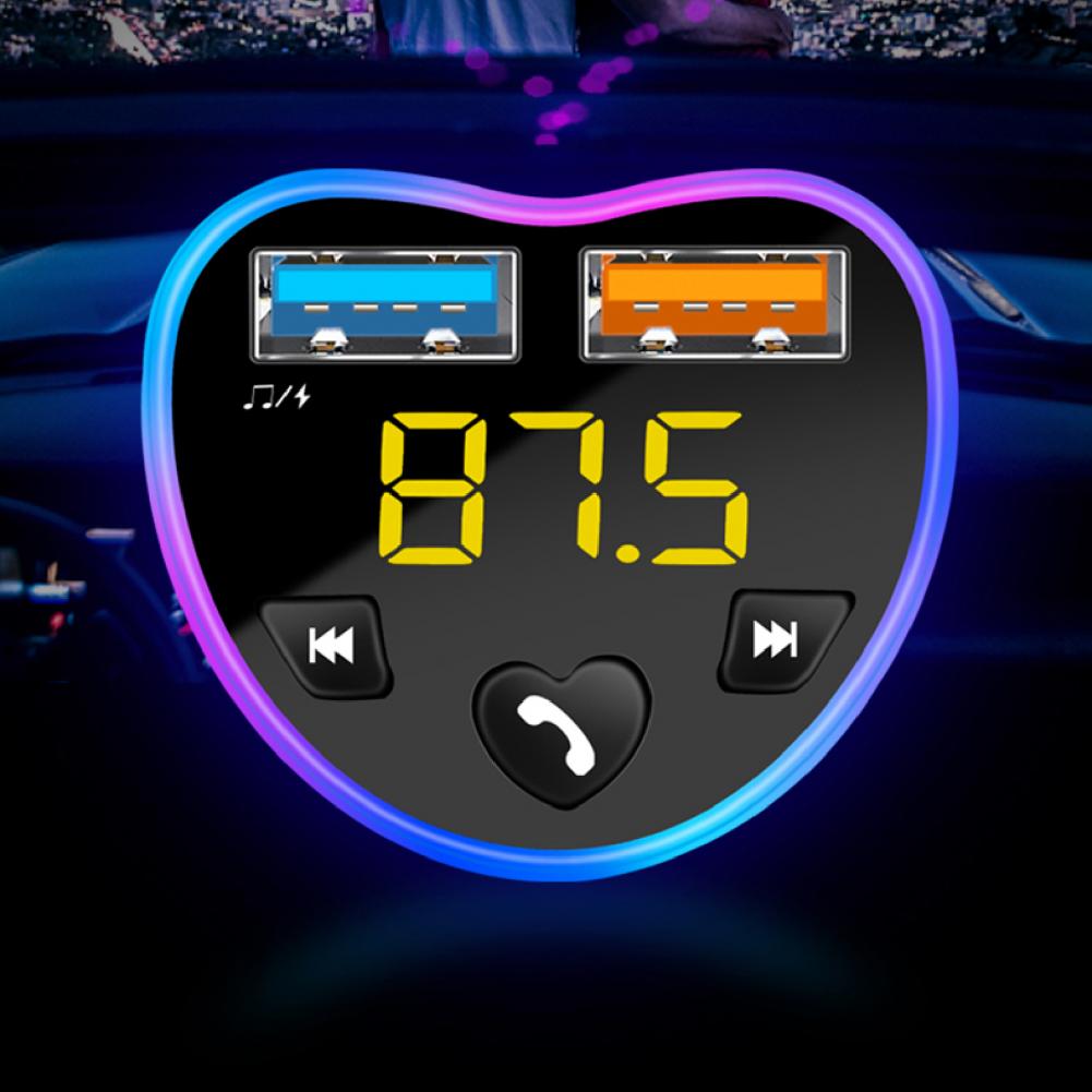 Много Привлекательные черты интегрированы в этого автомобильного зарядного устройства, такие как дизайн в форме сердца, Вызов по громкой связи, Bluetooth-Совместимость с операционными 5,0 чип, MP3 плеер, AI навигации вещания, автоматическая связь после запуска воспроизведение u-диска, мягкий синий окружающий светильник и так далее.