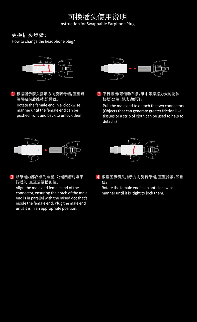Кроме того, он оснащен twist-lock обмена Аудио Разъема, позволяя вам лёгкое переключение между 3,5 мм несимметричный/2,5 мм балансный/4,4 мм сбалансированные штекеры в зависимости от вашего источника.