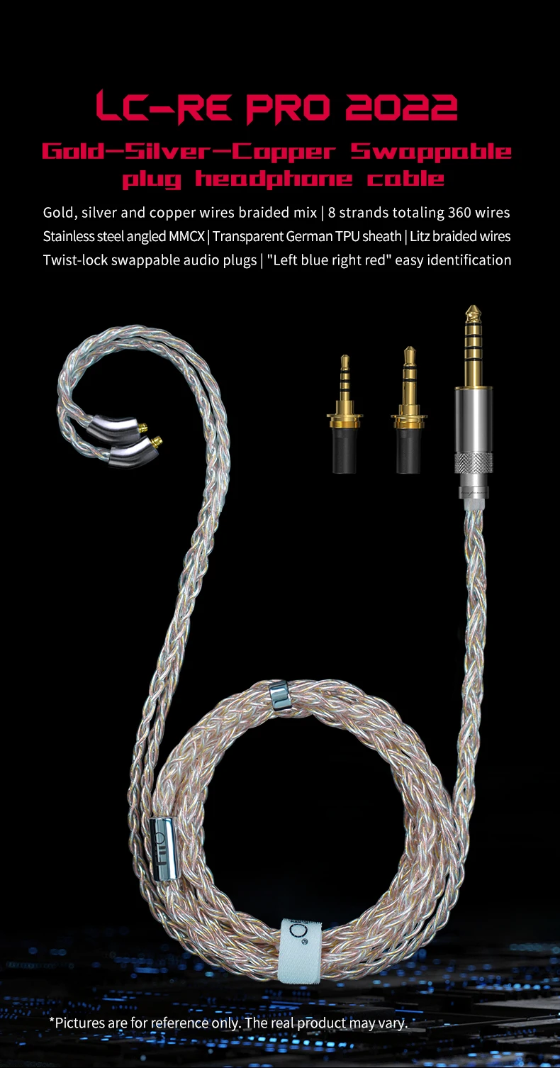LC-RE Pro 2022 золото-серебро-медь Swappable кабель для наушников