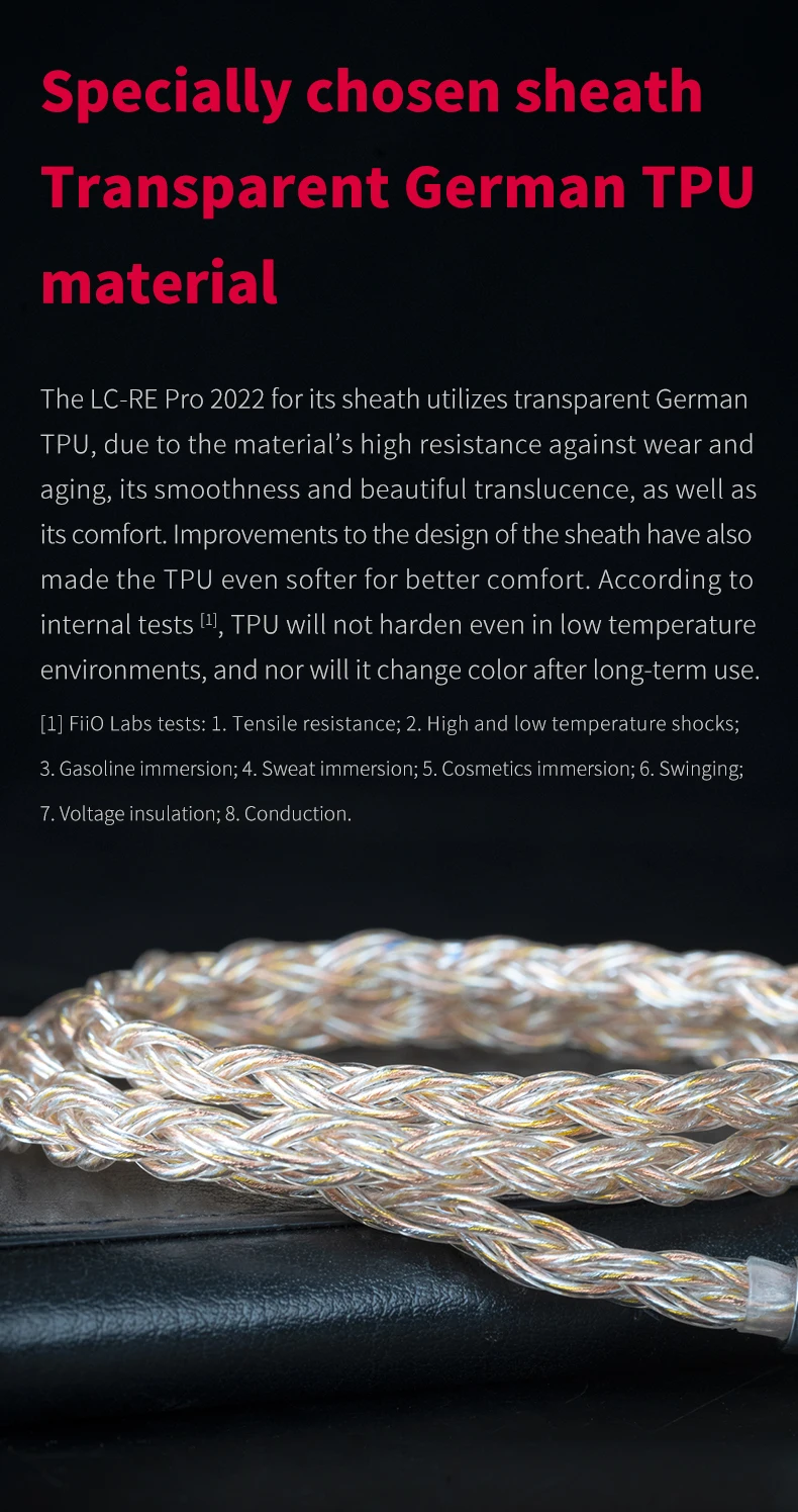 Модернизированный LC-RE Pro состоит из трех видов проводов-монокристаллической меди Furukawa, позолоченной монокристаллической меди и чистого серебра. Все три вида проводов проходят сверхвысокую температуру непрерывного литья после вторичной плавки, чтобы быть высокого качества. В качестве флагманского плетеного кабеля для наушников LC-RE Pro решается на один шаг.