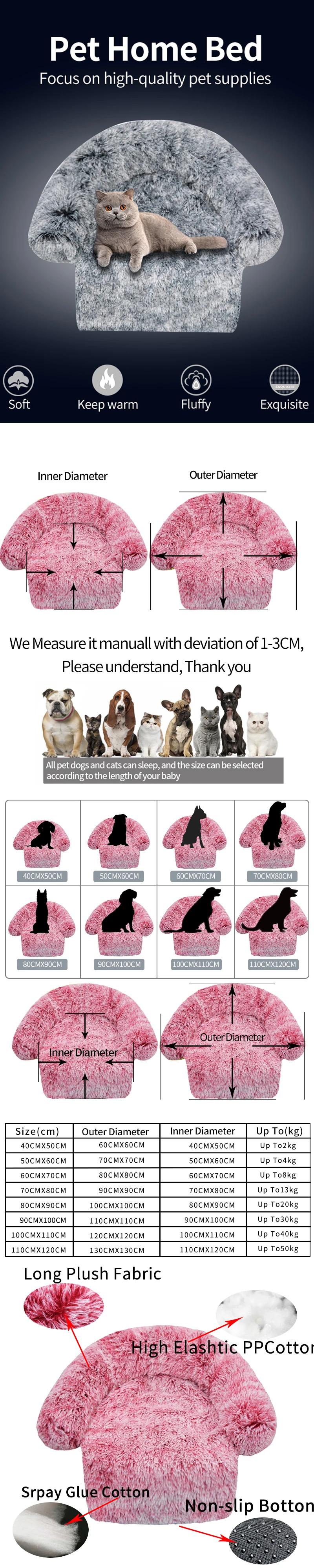 • Подушка для пончиков • плюшевая кровать для домашних животных 3 см • различные варианты цвета