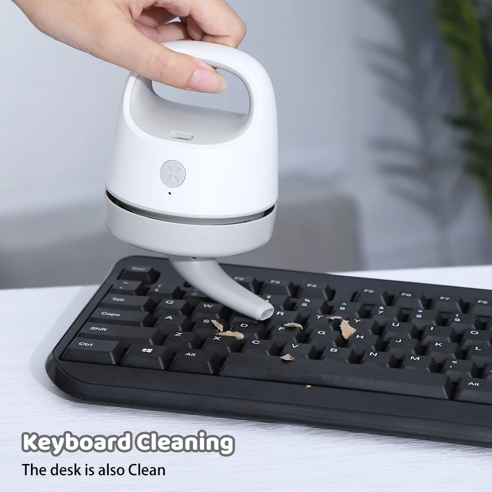 Наш Настольный пылесос имеет поднимающийся на 360 ° ветер, вращающиеся лопасти вентилятора и нейлоновые щетки с сильной мощностью всасывания и может легко собирать мусор и эффективно пылесосить, не рассеивая пыль.