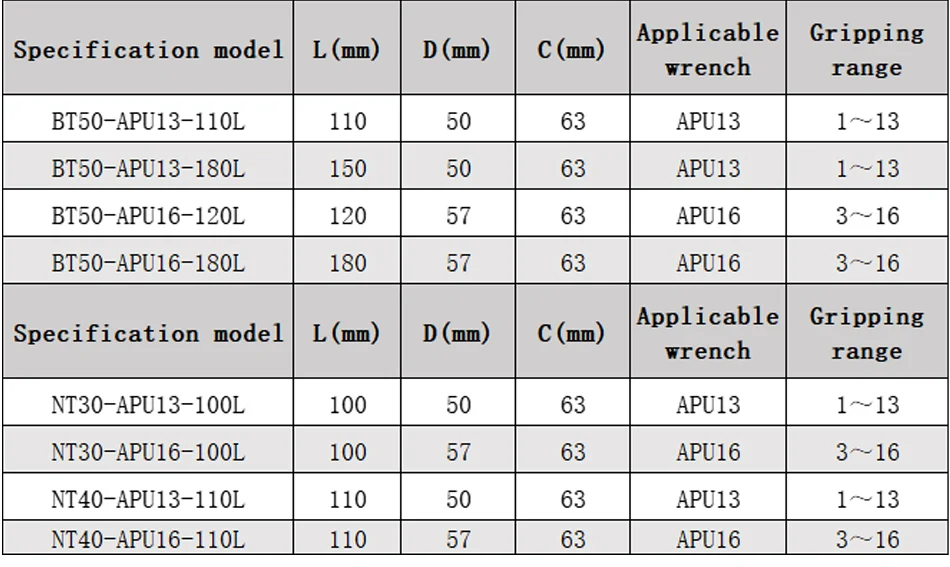 Приспособление диапазон: APU08 (0,6-8 мм) / APU13(1-13 мм) / APU16(1-16 мм)