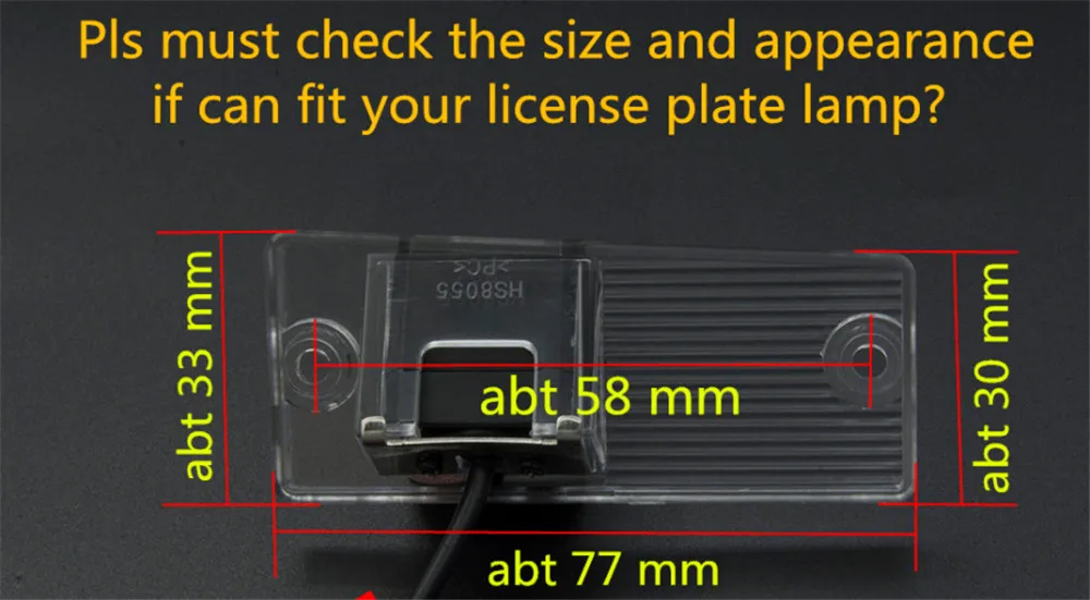Уважаемый клиент! Пожалуйста, проверьте размер фотографии камеры, посмотрите, может ли он поместиться в ваш автомобиль номерной знак лампы!