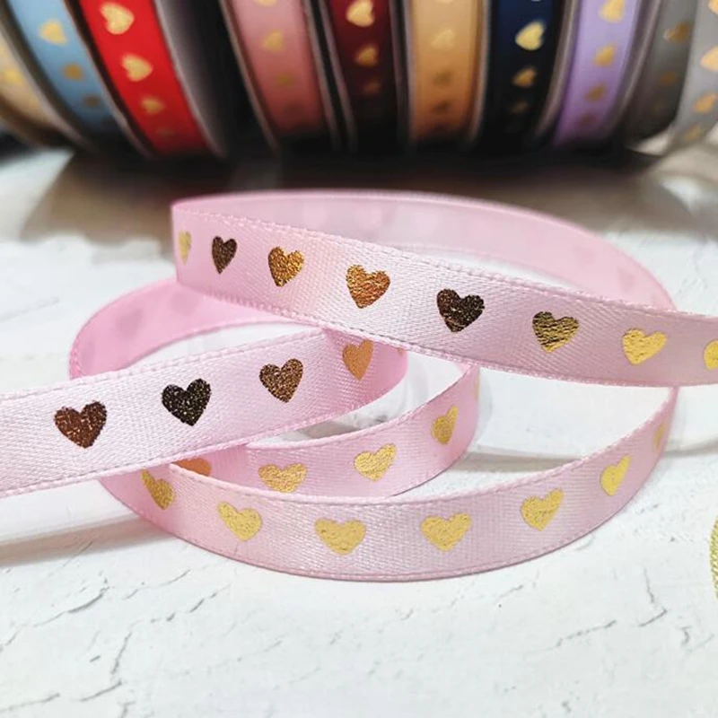 5 ярдов 1 см 11 видов цветов печать горячего тиснения сердце атласные ленты DIY подарочная упаковка материал Свадебные Рождественские украшения