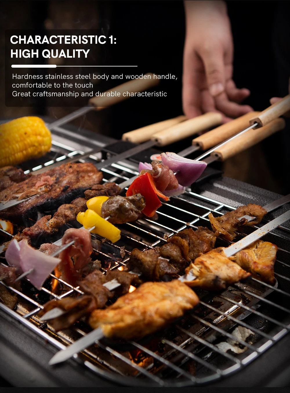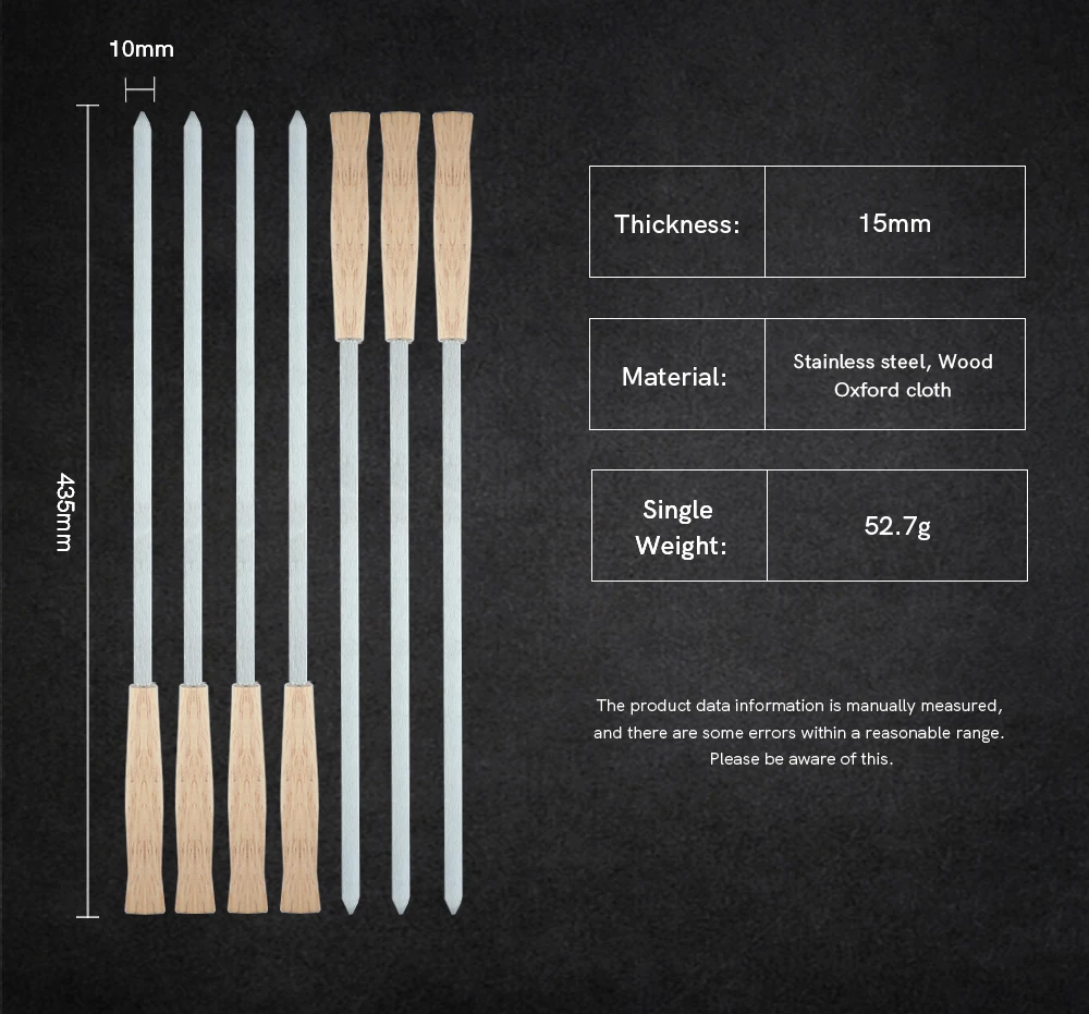 WAK Outdoor 8PCS BBQ Skewers Tools Polishing Wooden Handle Grill Roasting Sticks 43.5cm Camping BBQ Tools Set Storage Bag Kiit