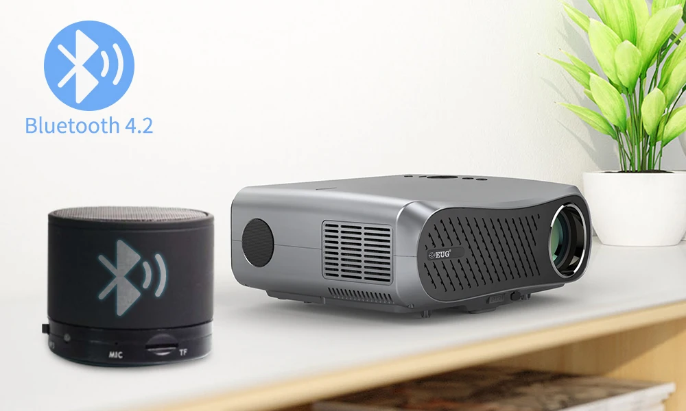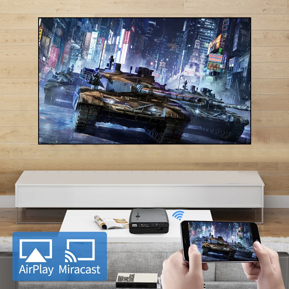 Функция Blue-tooth 4,2, 2,4g/5g wifi, с быстрой скоростью сети. Проектор обладает высокой яркостью, имеет 7200 люменов. Проектор имеет контрастность 10000:1, он может удовлетворить все ваши требования.