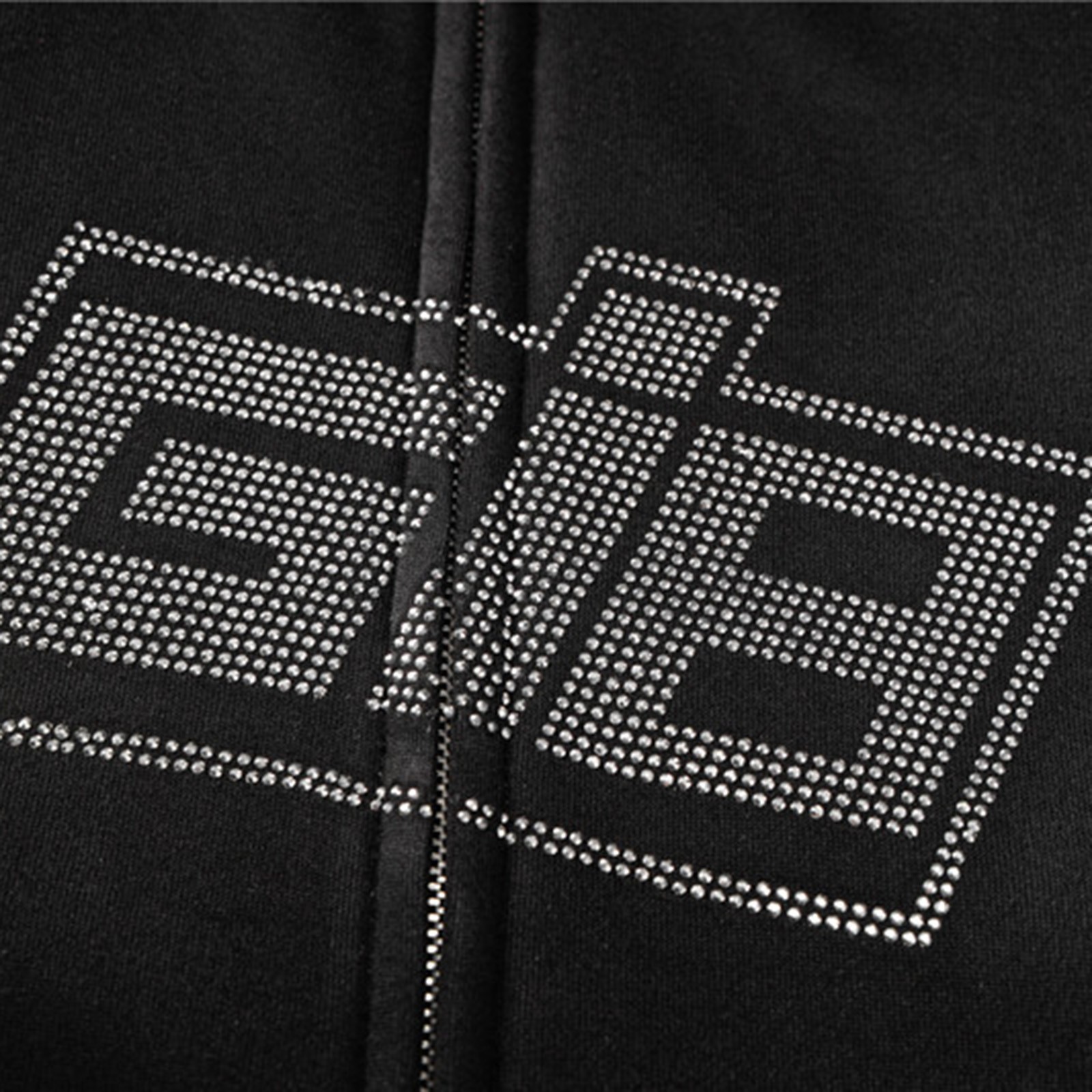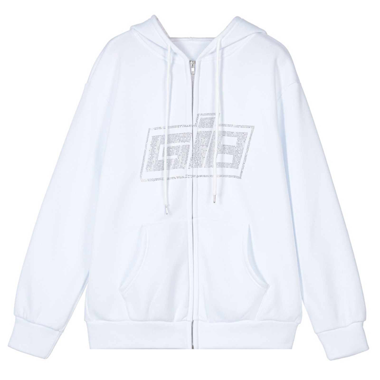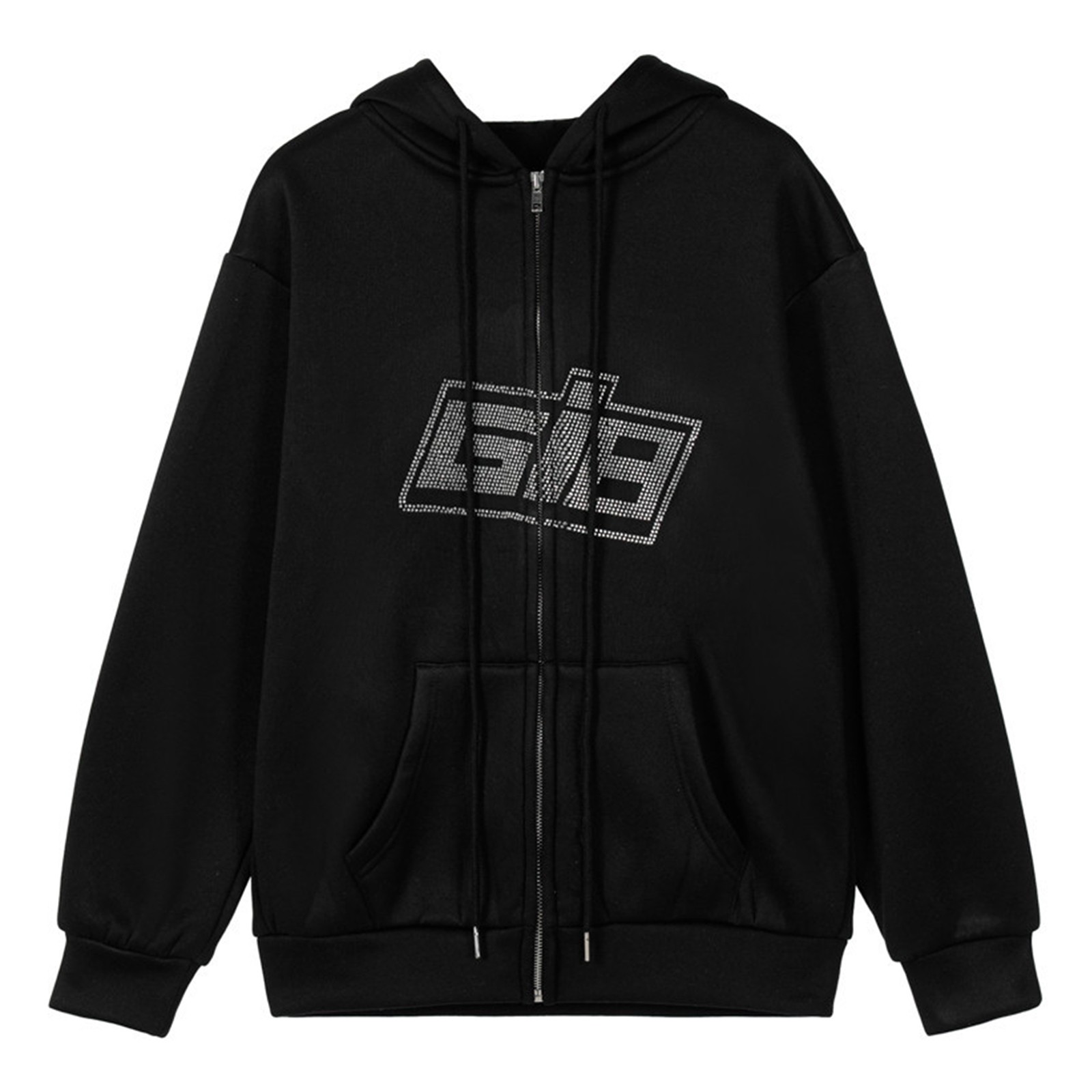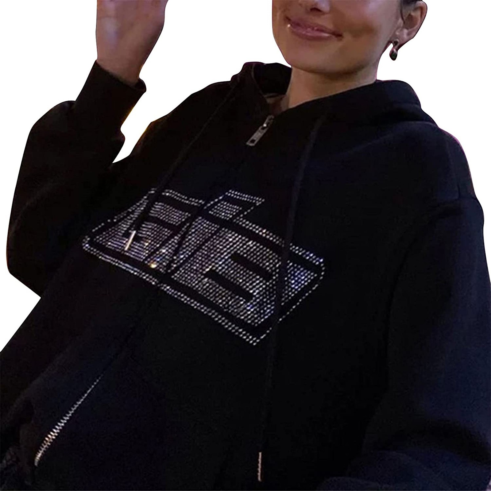 Women's Rhinestone Letter Print Long Sleeve Sweatshirt Hoodis Zipper Loose Coat