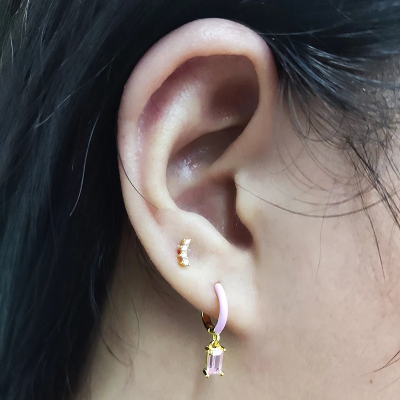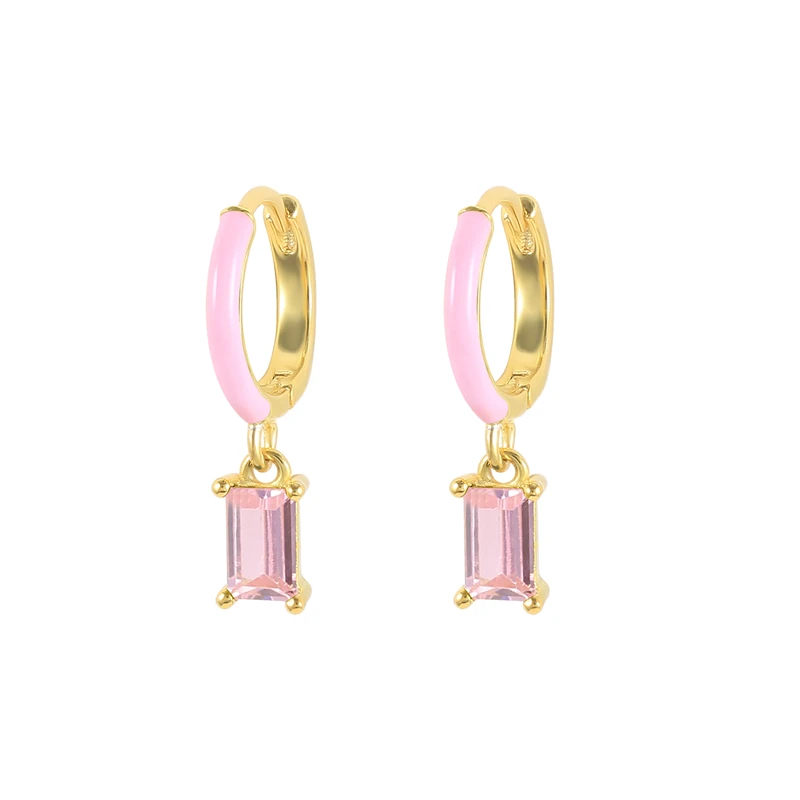 CANNER 925 Sterling Silver Drip Oil Pink Zircon Hoop Earrings CZ Circle Round Loops Crystal Earrings For Women Piercing Ohrringe