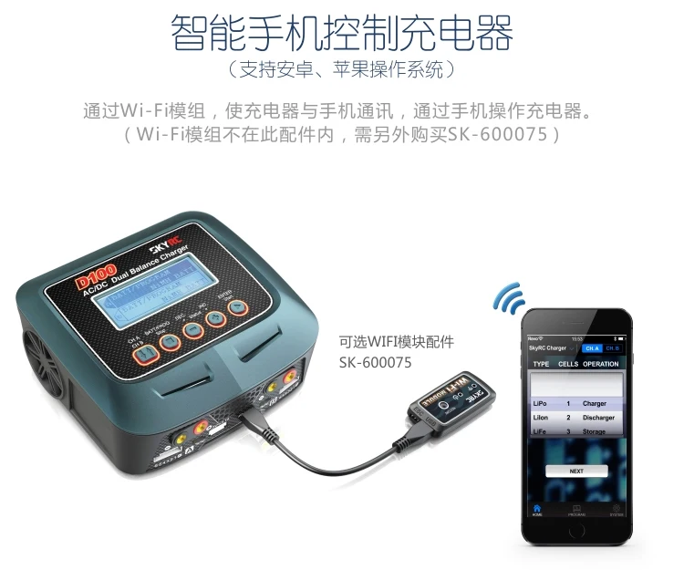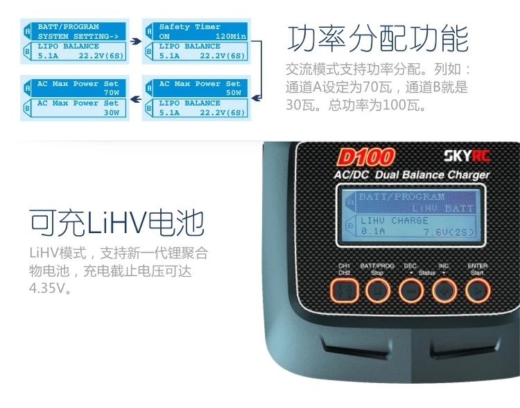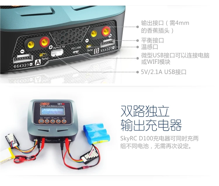 SKYRC D100 двойной выход 100 Вт lipo дистанционное управление автомобиля литиевая батарея баланс быстрое зарядное устройство