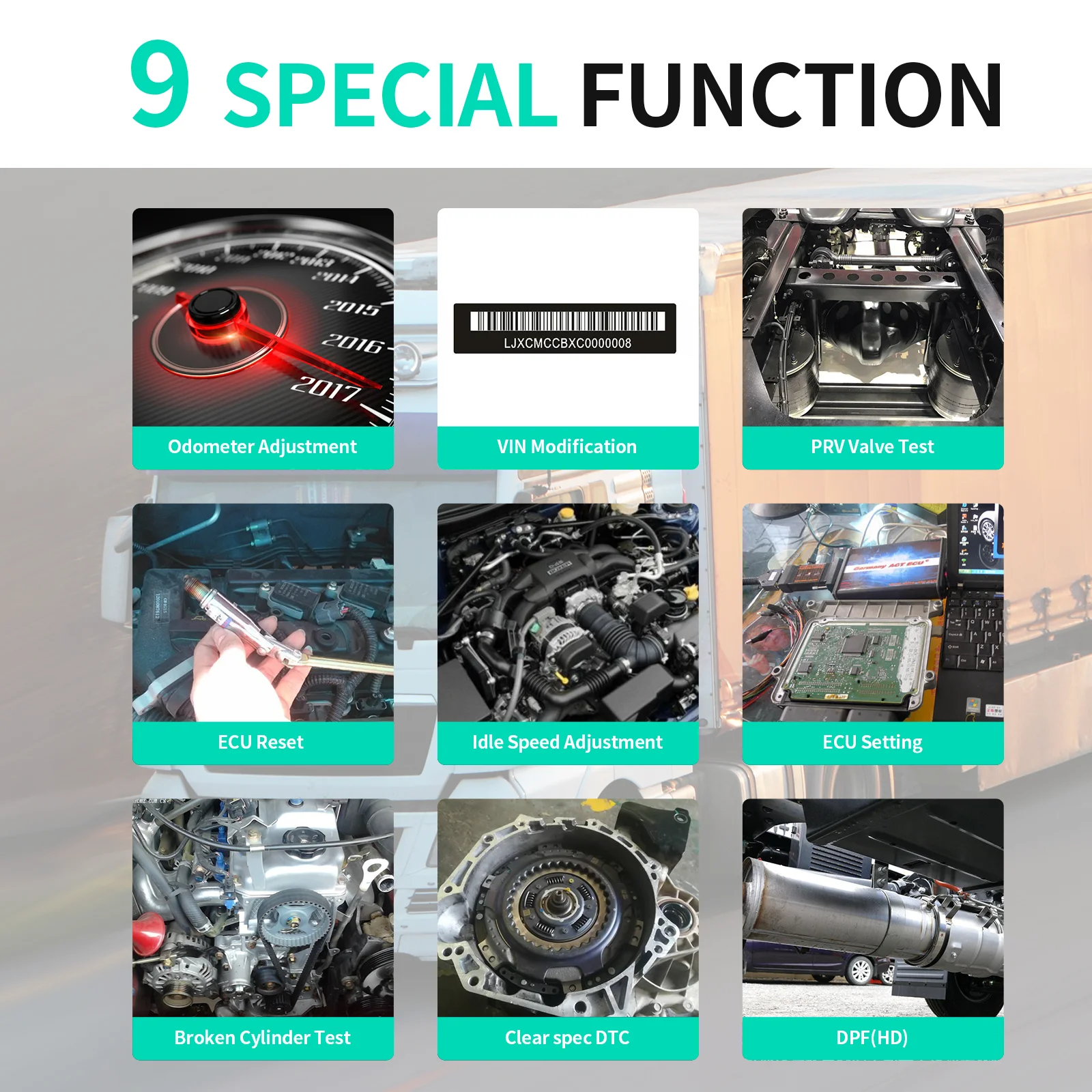 NS 566SЯвляется передовым дизельным планшетным сканером, основанным на операционной системе Android9.0. Преимущества этого сканера для грузовиков obd2 кроются не только в его всесторонних функциях, включаяПолная диагностика систем, все функции obd2, различные функции сброса(Регулировка одометра, модификация вин, PRV тест клапана, регулировка скорости холостого хода, тест сломанного цилиндра, чистый специальный DTC, калибровка ECU/DPF Сброс), Но его Отличная производительность в передовом оборудовании, более быстрая и точная диагностика.
