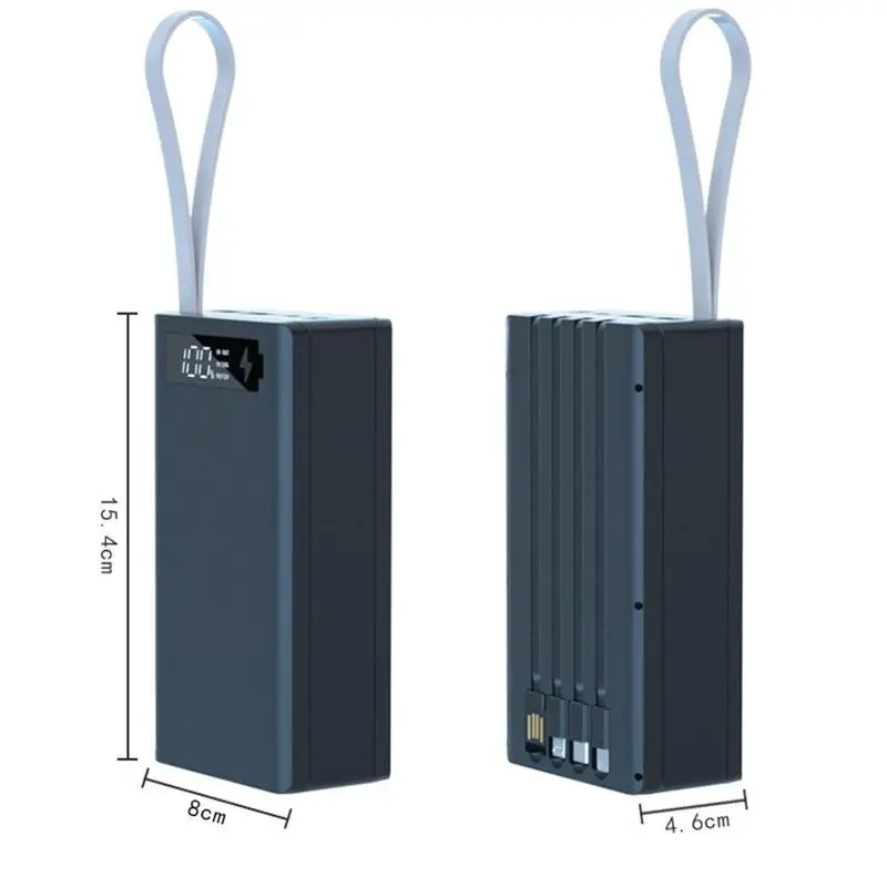 Встроенный 4 кабеля: выход type-C, для микровыхода, для выхода iphone, вход USB для зарядки