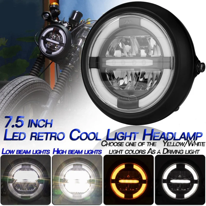 7,5 дюймовый универсальный круглый светодиодный светильник для кафе-гонщика на мотоцикле, светильник на дальние расстояния, светильник для мотоцикла