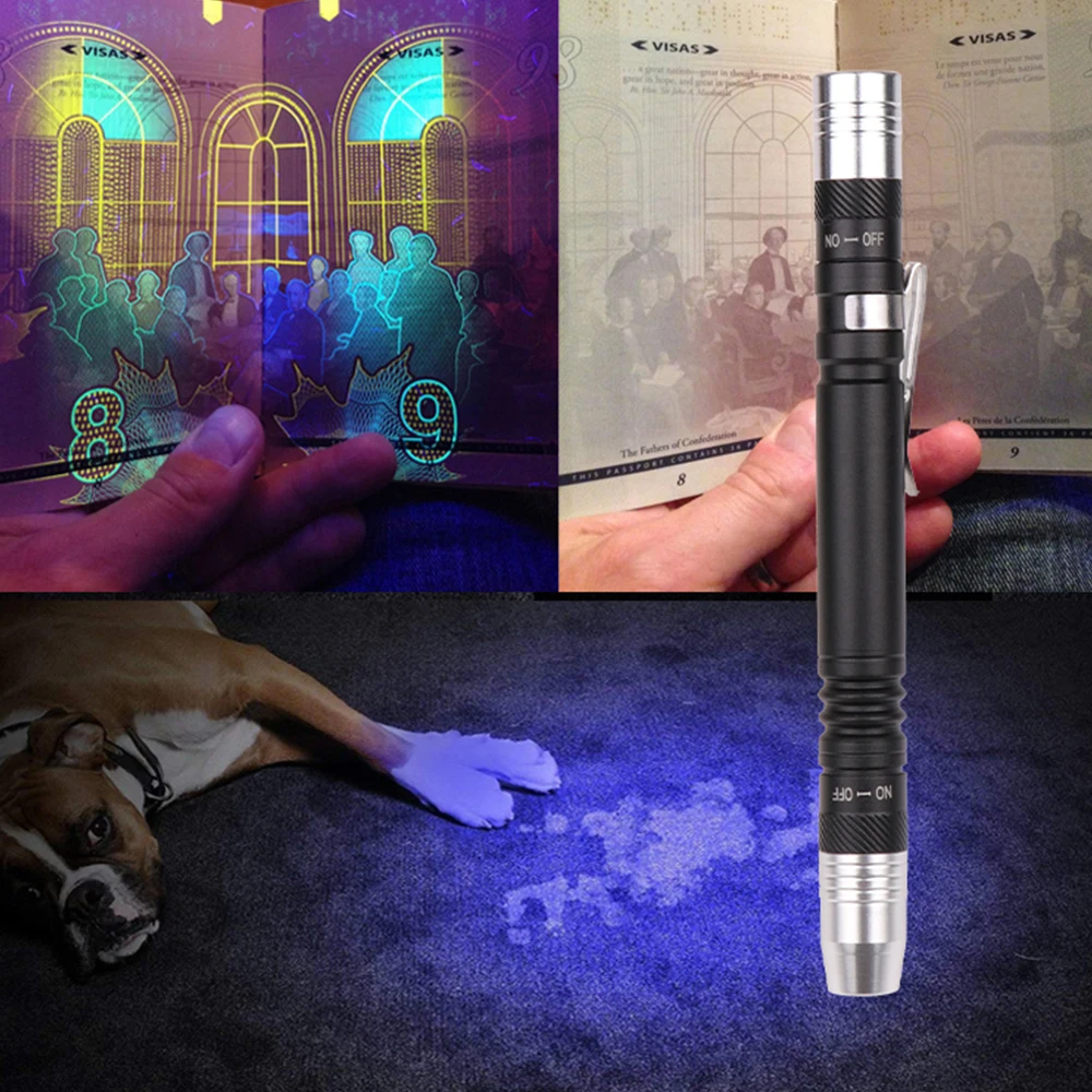 New 2 in 1 Mini UV LED Flashlight Pen Flashlight Multifunctional 395nm Ultra Violet Flashlight Purple White Light Torch