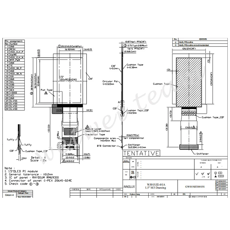Интерфейс сигнала: MIPI (1 полоса передачи данных) , 24 разъема
