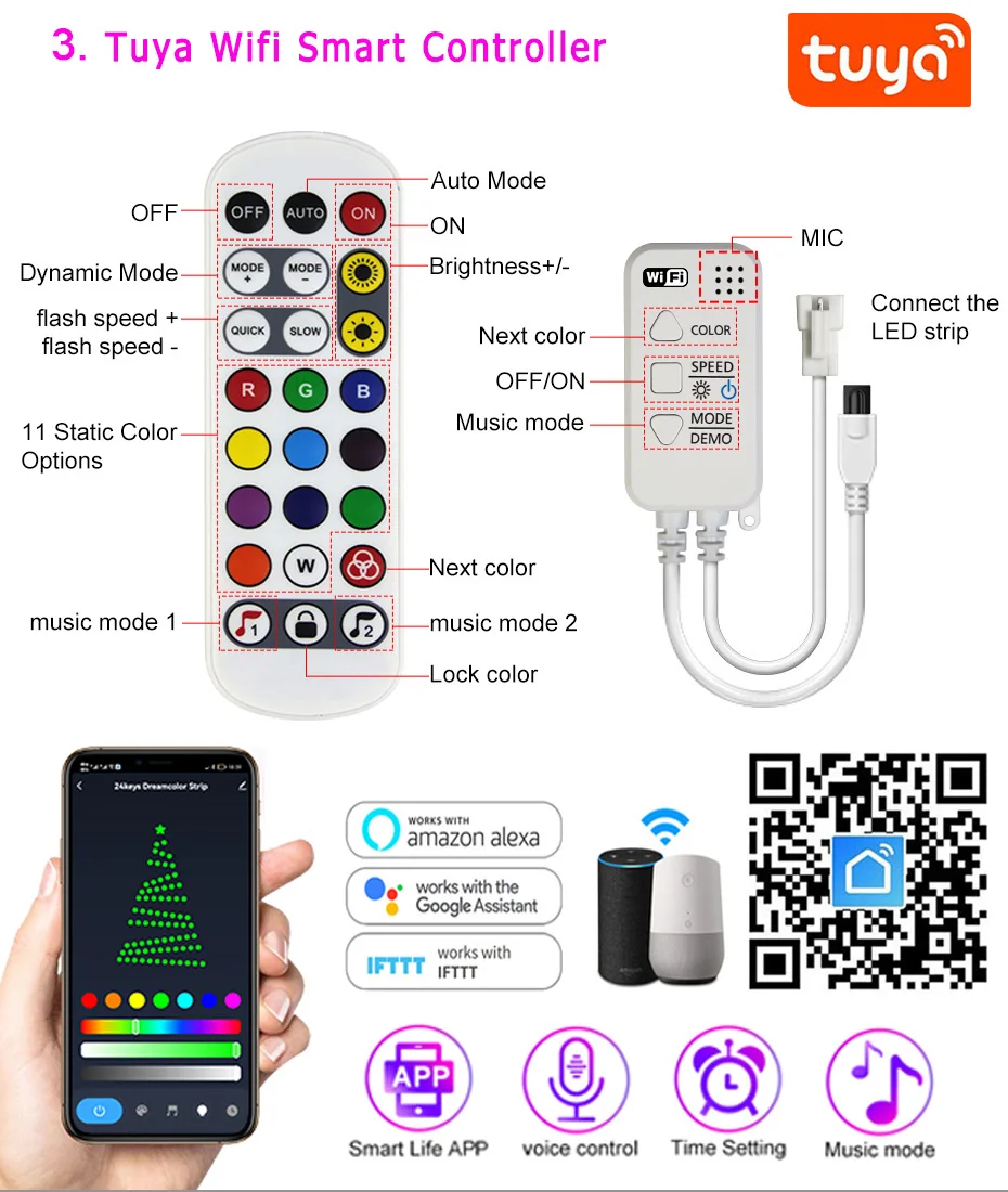 Голосовое управление, дистанционное управление через приложение, с регулируемой яркостью, Совместимость с Amazon Alexa Echo Google Home Assistant, IFTTT