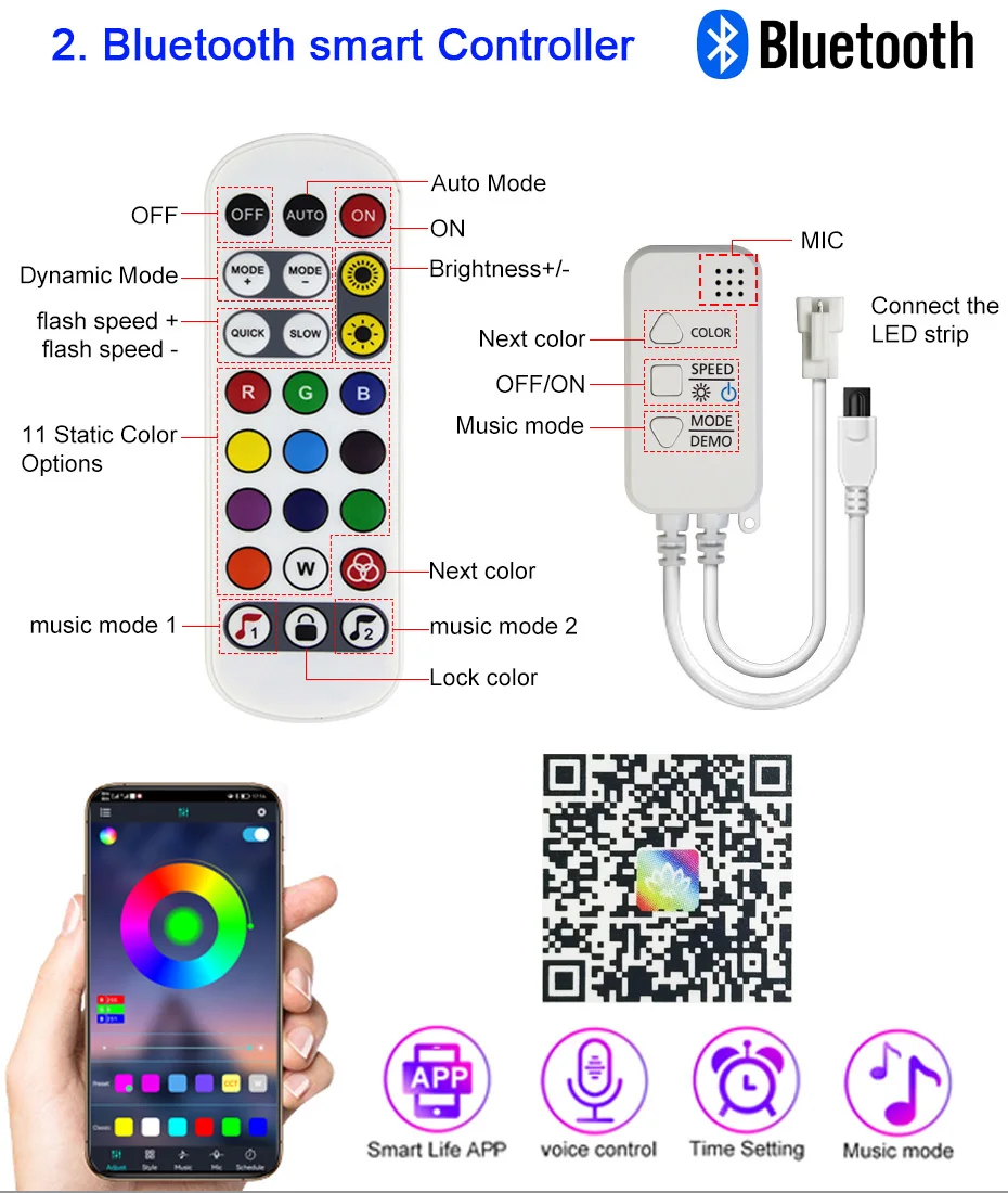 【Управление WiFi через App】Приложение“Умная жизнь» Может управлять светодиодный светильник s для достижения эффекта, которого может достичь весь светильник (включение/выключение/изменение цвета и яркости). С помощью мобильного приложения вы можете выбрать все цвета.