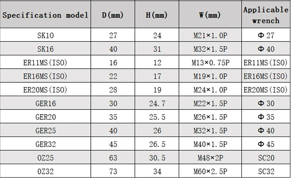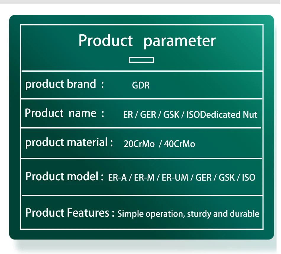 Виды гаек: ER-A/M/UM GSK GER ISO OZ