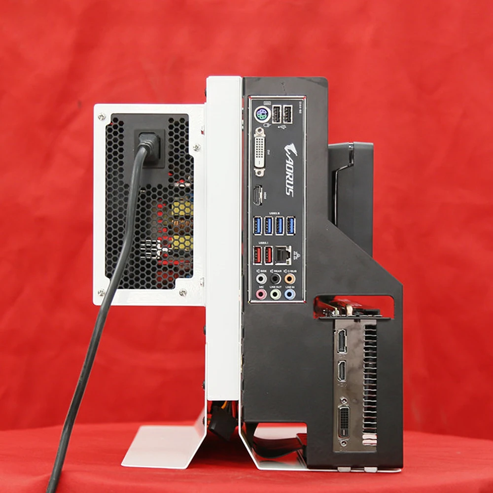 Основной корпус корпуса (1 Кнопка питания 1 Кнопка перезапуска, два порта usb3.0, 1 аудиопорт, 1 микрофонный порт). Кронштейн видеокарты, кронштейн источника питания и винтовой пакет