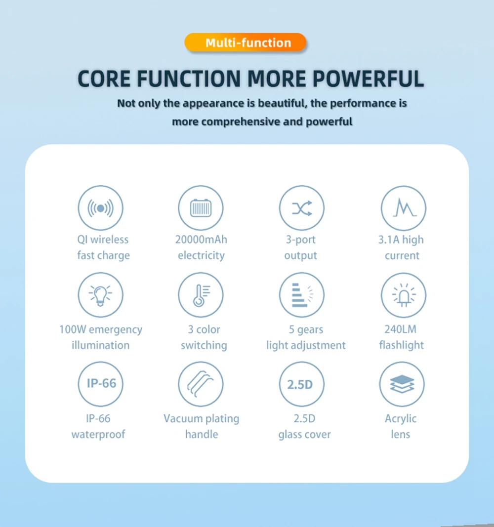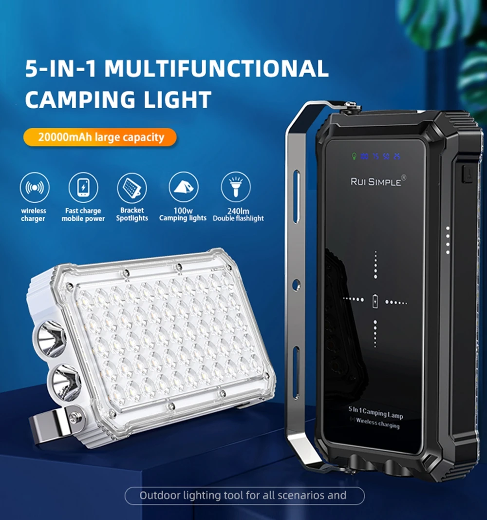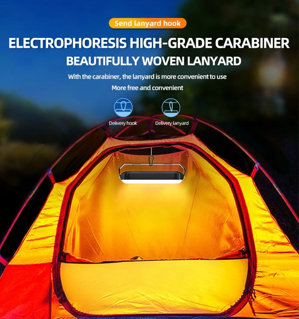 3. 2000mAh Power Bank : This camping light with DC 5V/2.1A USB output port, fast charging your cell phone/iPhone/tablet/other devices via dual USB charging cable when hiking or camping.