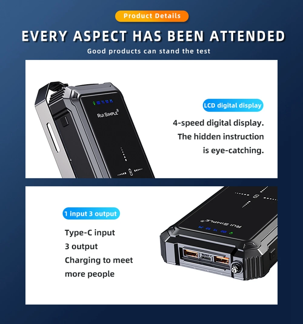 Output :USB1:5V -3.1A USB 2: 5V-3.1A TYPE-C :5V-3.0A
