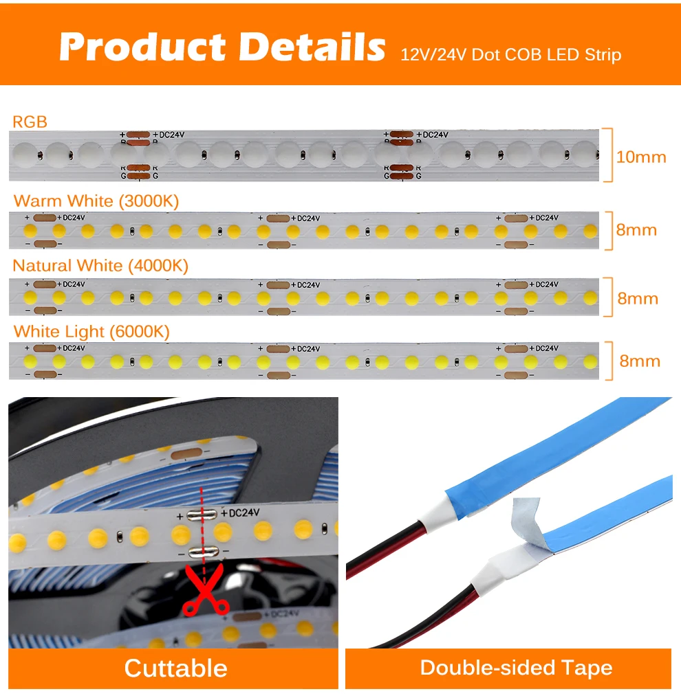 RGB COB Светодиодный прожектор 480 светодиодный s/m мягкий гибкий светильник DC12V 24V Теплый Холодный белый точечный светильник для декора 3000K 4000K 6000K