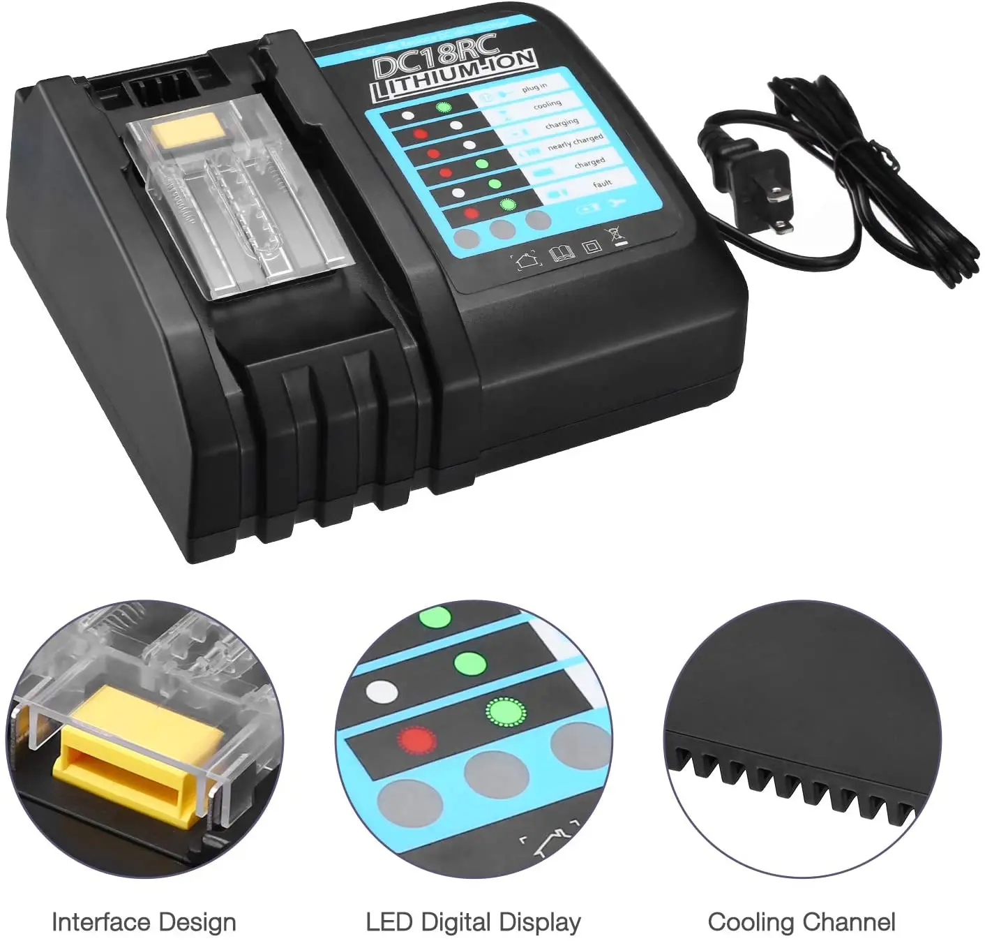 It is the newest rapid charger for your electric power tools.Charging current of 3ADescription:Power supply: 100-260VPlug type:EU plugFrequency: 50-60HZOutput: 3ASpecifications:Material:plasticColor: blackNote:BL1415G BL1430G BL1815G BL1830G and all G series battery is not supportedPacking list: