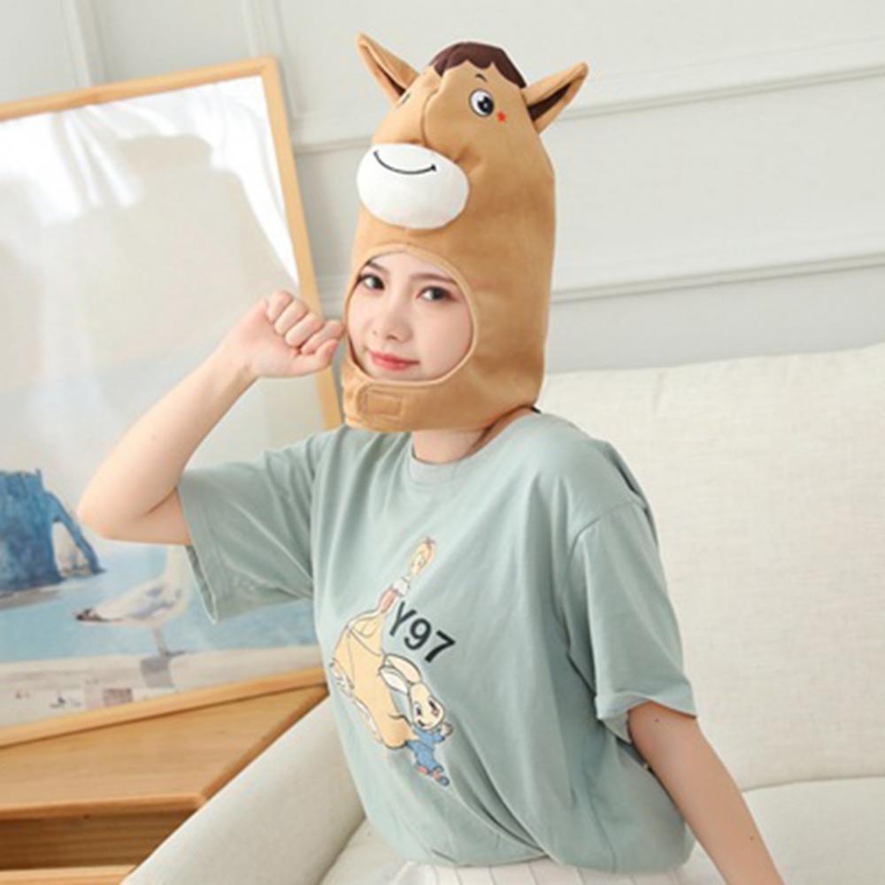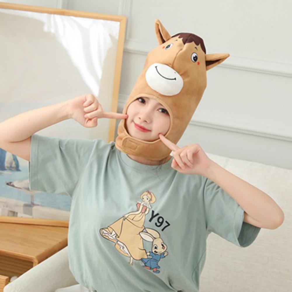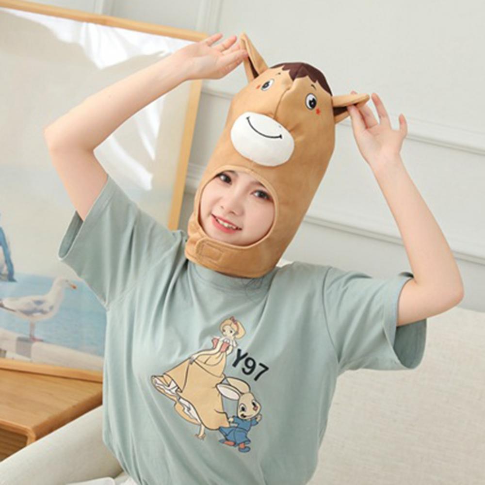 Cute Bee Sloth Parrot Cow Horse Head Soft Plush Doll Headgear Hat Sleeping Toy