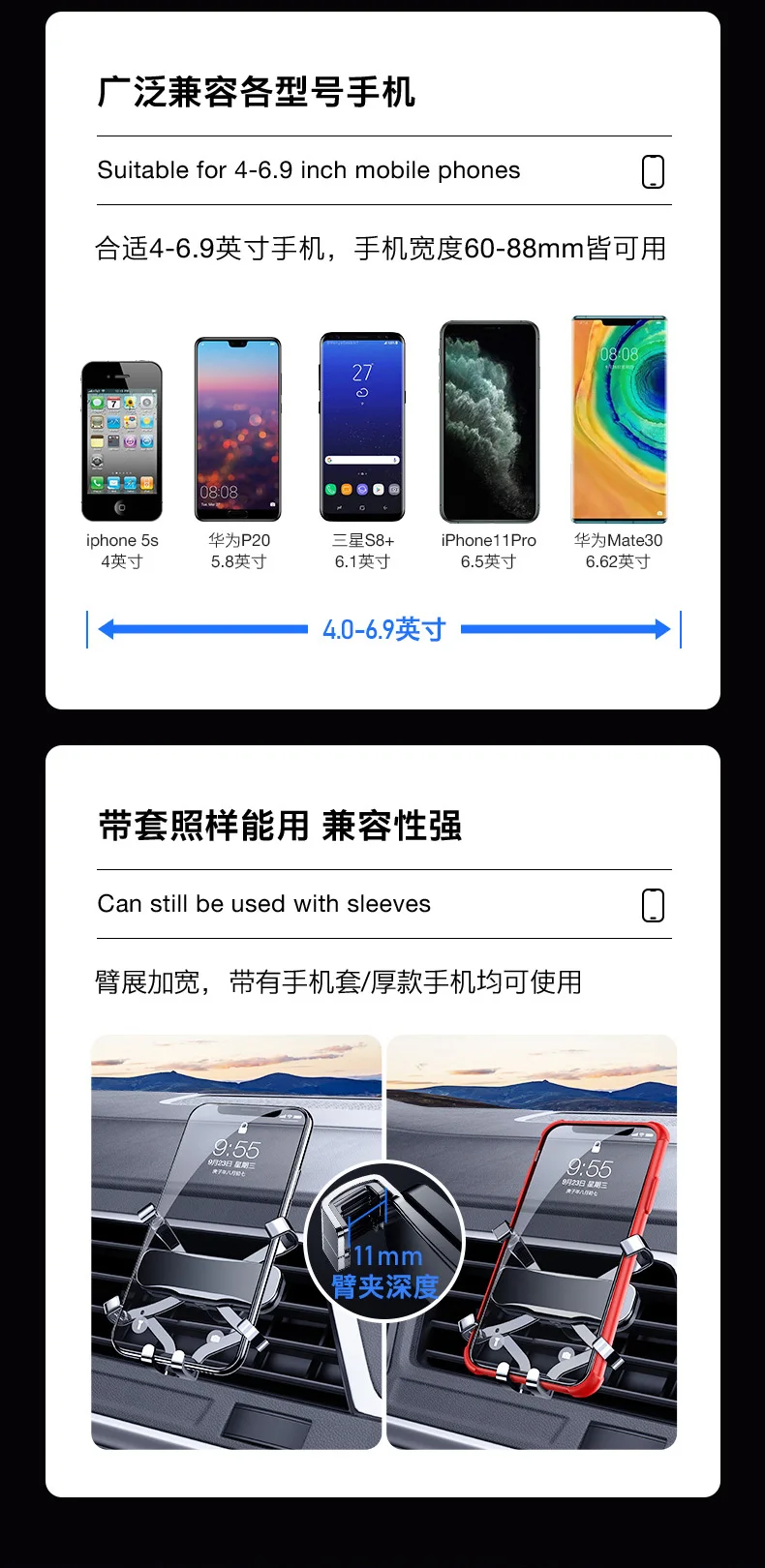 Широкая совместимость: держатель телефона для автомобиля поддерживает обычную розетку. Подходит для всех видов смартфонов от 4,0 до 7,0 дюймов. Чехол для телефона приемлем.