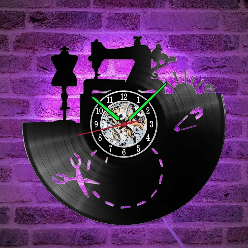 MCDFL Швейные большие 3d Виниловые дисковые часы с подсветкой тарелки для настенного механика Лофт Современное украшение дома гостиная секс часы