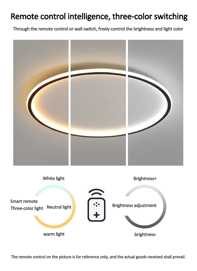 [Напоминание]: при использовании пульта дистанционного управления яркость может быть изменена, и светильник с регулируемой яркостью. Вы также можете легко изменить цветовую температуру между теплым белым, нейтральным белым и холодным белым.