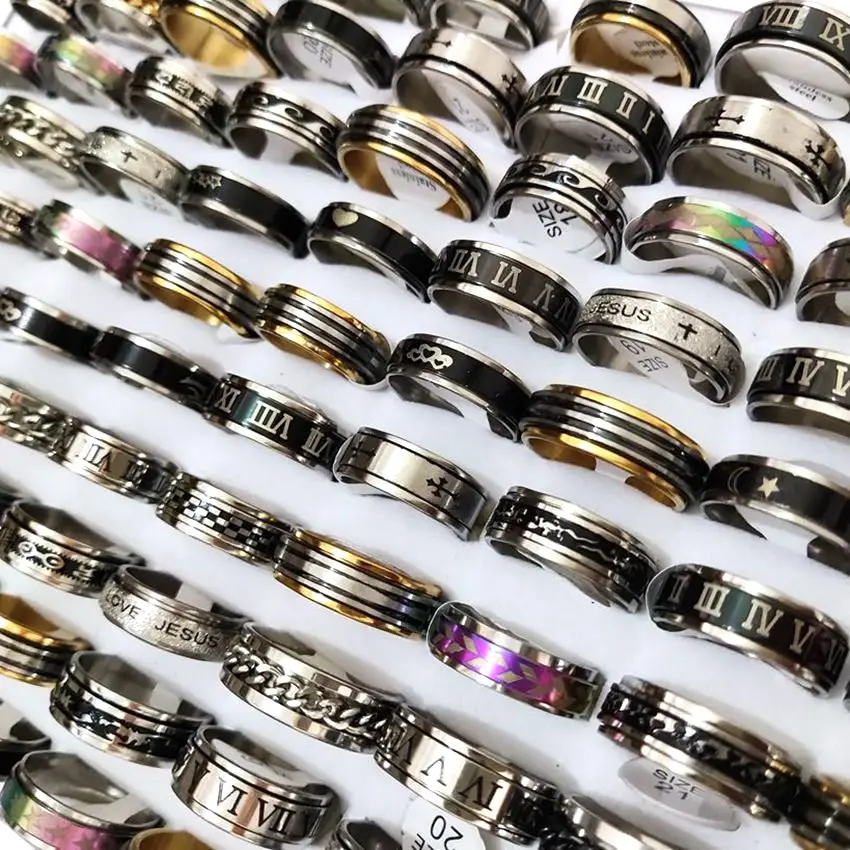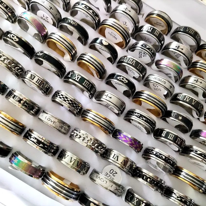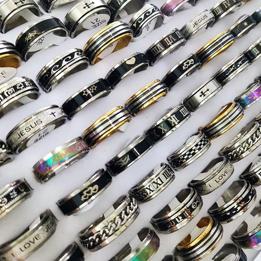 30 шт Мужское вертушное кольцо вращающееся из нержавеющей стали мужское модное вращающееся кольцо