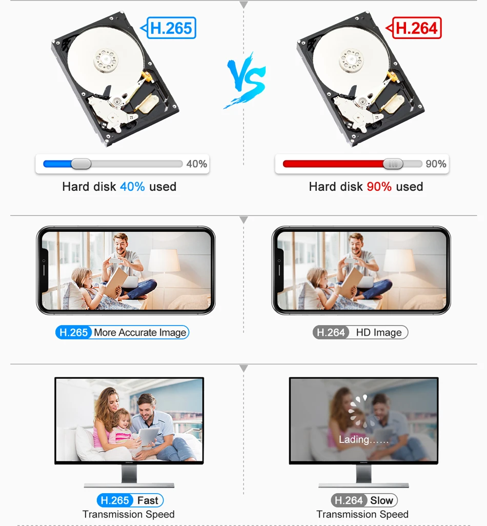 H.265 более четкий, HD разрешение предлагает вам лучшее качество изображения в более низкой скорости.