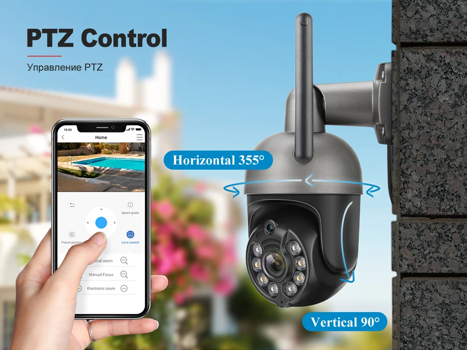 4. PTZ: панорама 355 градусов/наклон 90 градусов.